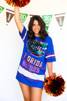 Experience effortless style with The Sideline T-Shirt Dress - Florida by Stewart Simmons. Designed for comfort and versatility, this dress features a soft, breathable fabric and a flattering cut that moves with you. Its vibrant Florida-inspired design brings a touch of sunshine to your wardrobe, making it perfect for casual outings or relaxed weekends. Step into comfort and confidence with a dress that’s as easygoing as your lifestyle.