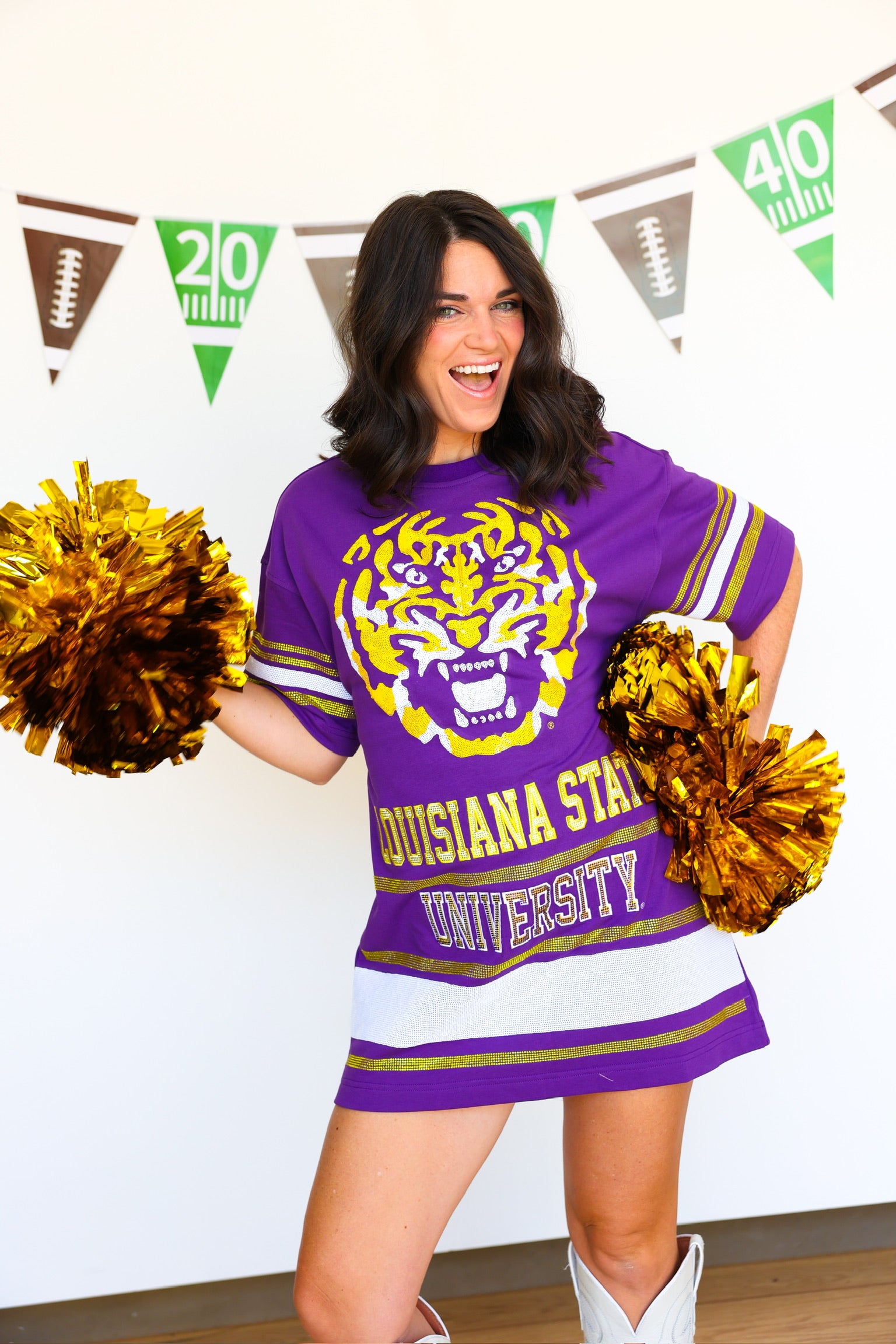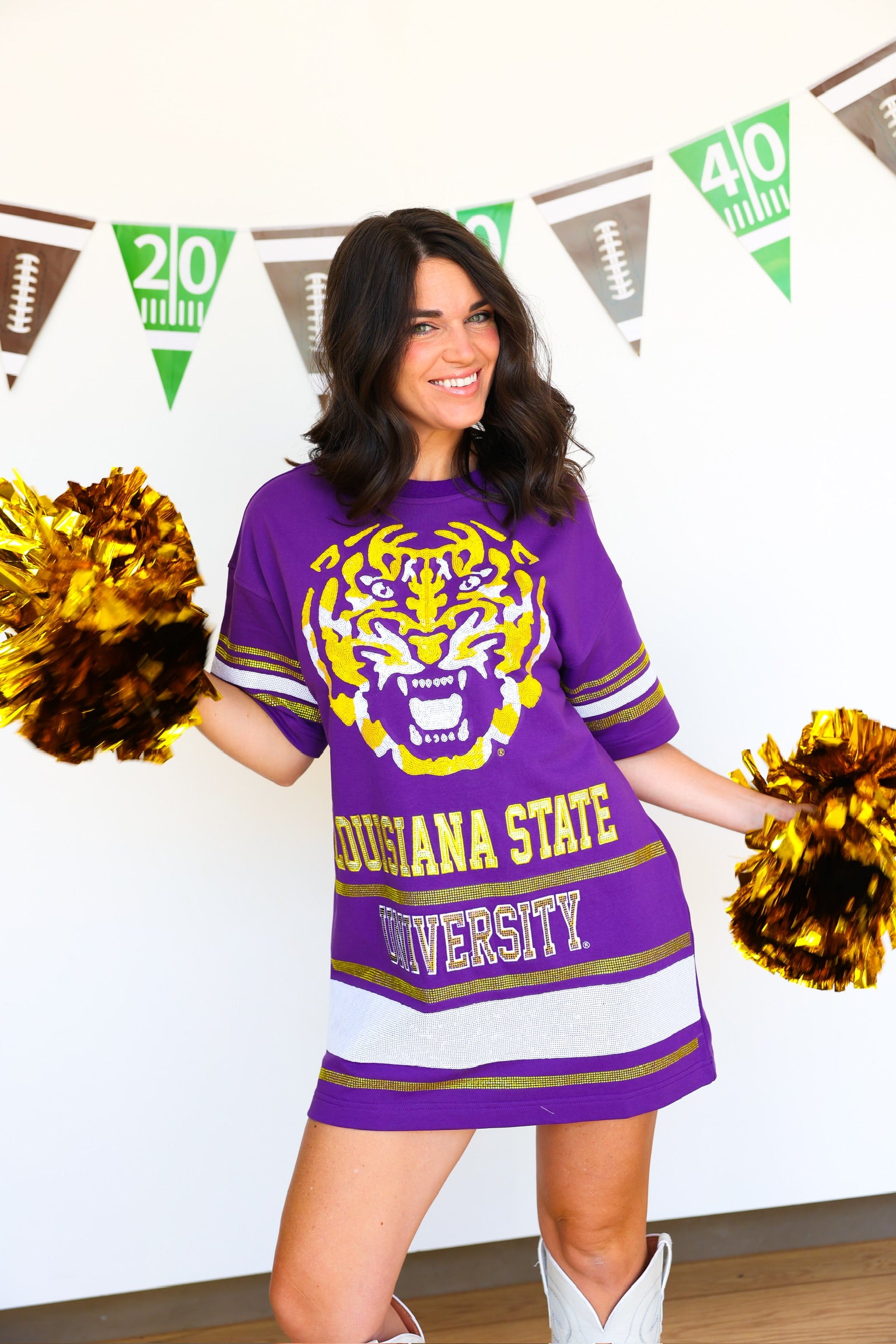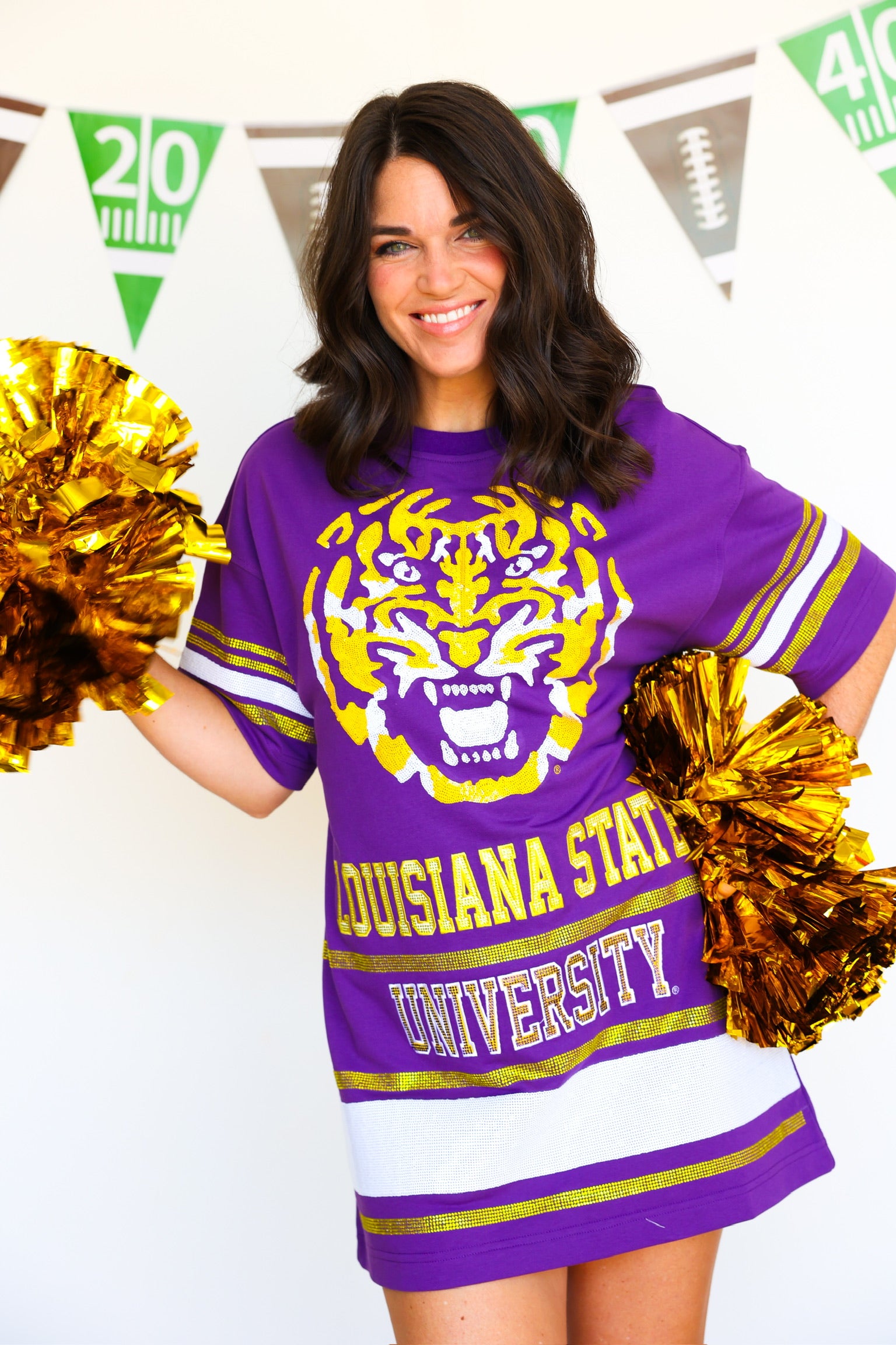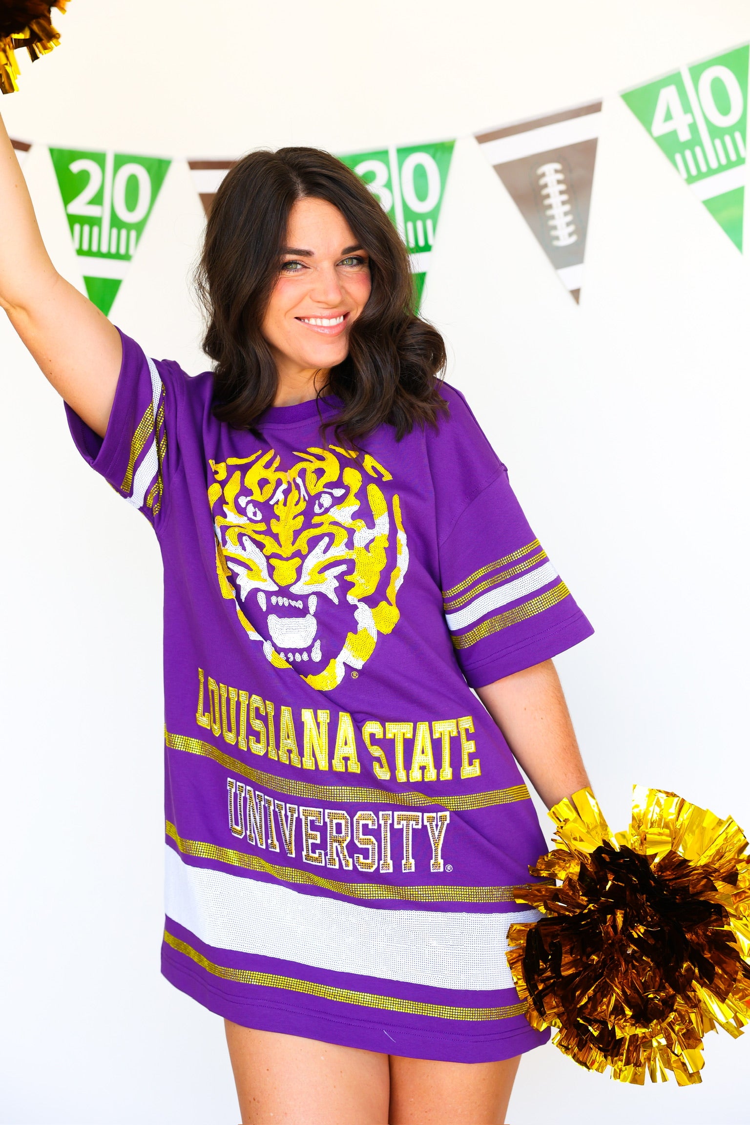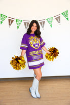 Show your team spirit in effortless style with the Sideline T-Shirt Dress - LSU. This comfortable, casual dress combines the ease of a classic tee with a flattering silhouette, perfect for game days or everyday wear. Featuring bold LSU colors and a relaxed fit, it keeps you cool and confident while cheering on your favorite team. Elevate your fan wardrobe with this versatile dress that’s as spirited as you are!