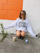 Celebrate Halloween in cozy style with our Spooky Season Sweatshirt. Its oversized fit adds an extra layer of comfort perfect for chilly autumn nights or festive gatherings. Designed with fun in mind, this sweatshirt makes it easy to embrace the spooky vibe while staying warm and relaxed all season long. Make your Halloween wardrobe both playful and practical with this must-have piece!