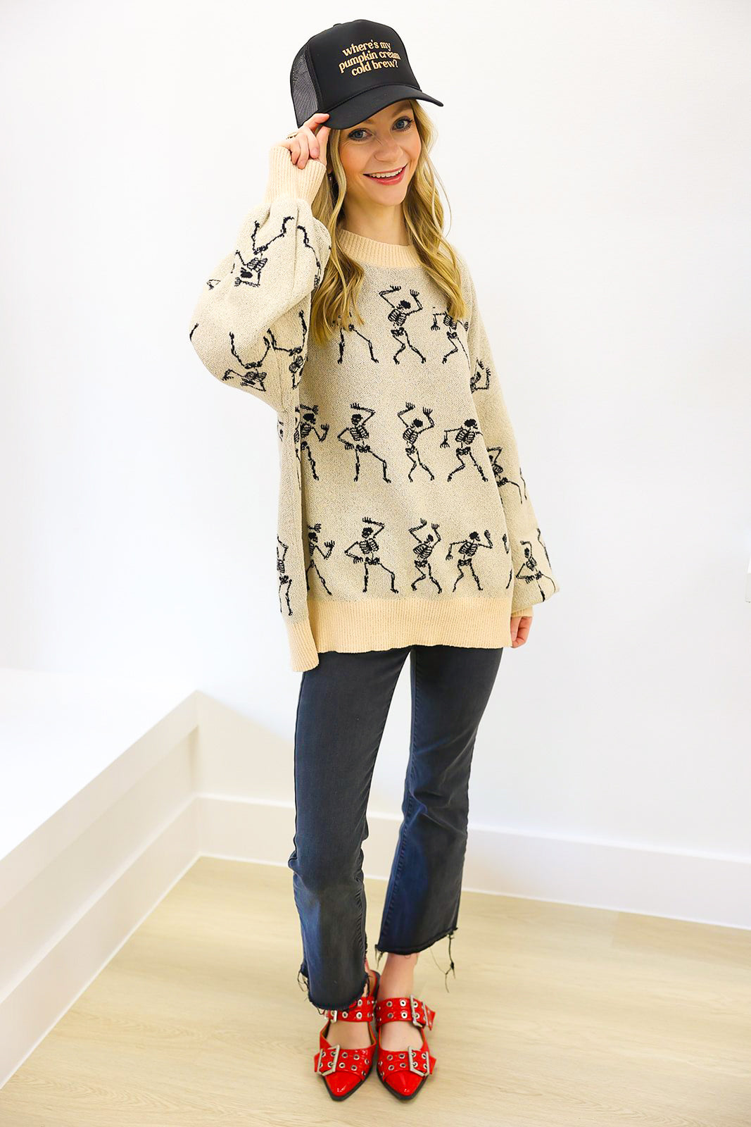 Get into the Halloween spirit with our Tan Dancing Skeleton Line Sweater! ๐บ๐ Perfectly spooky and stylish, it layers effortlessly over a crisp white button-down for a fun, festive look. Cozy and eye-catching, this sweater is a must-have for your seasonal wardrobe! ๐๐ป