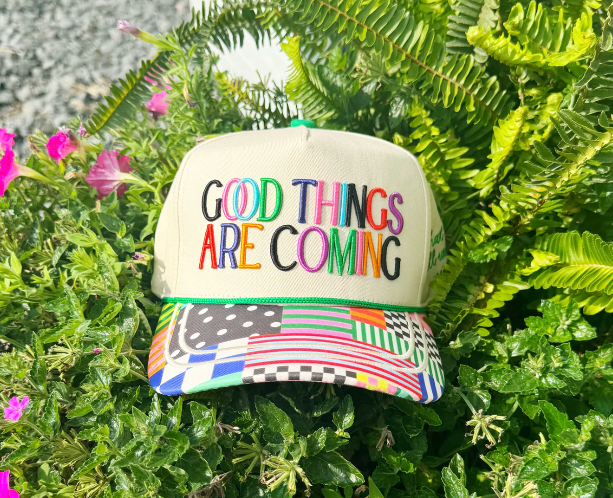 Get ready to wear optimism with the Good Things Are Coming hat—your new favorite reminder that brighter days are just ahead!