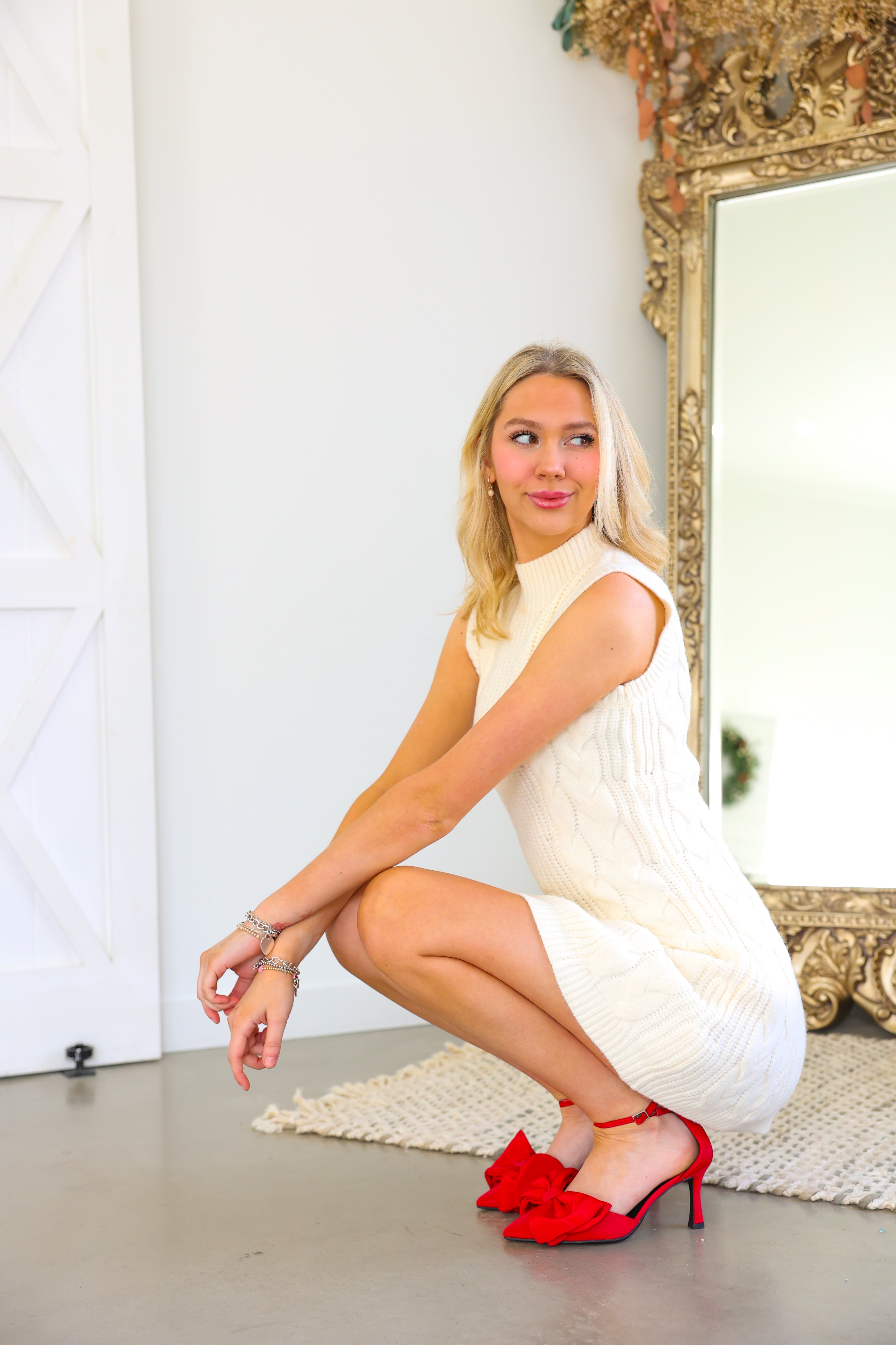 White Sweater Mock Neck Sleeveless Dress