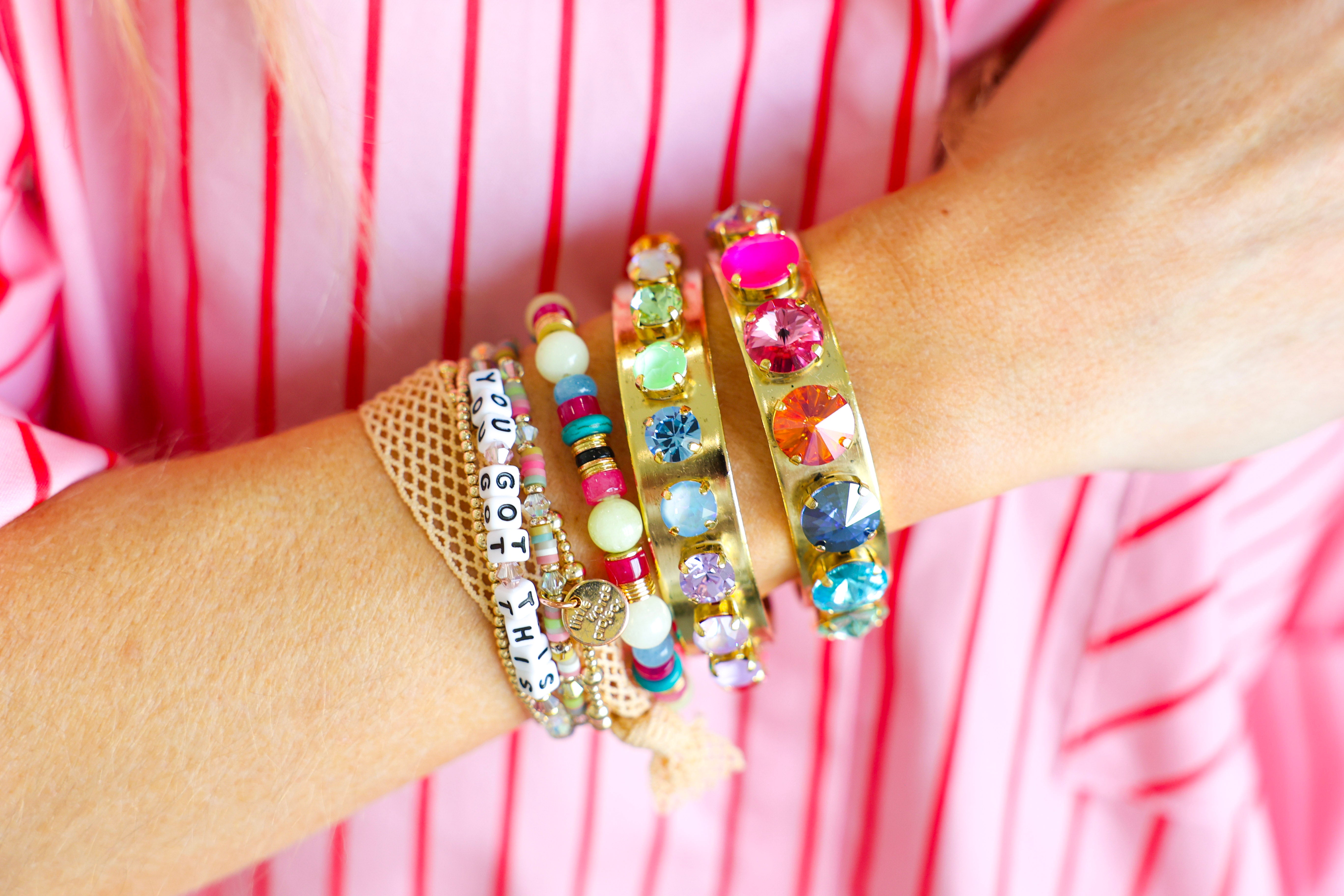 The radiant watermelon-inspired hues feature a playful mix of pinks, citrus, blues, and greens that catch the light beautifully and add a sophisticated pop of color to your stack. Whether you’re styling it with a crisp white dress, denim and a blouse, or your favorite occasion outfit, this eye-catching cuff instantly elevates your look from simple to chic.