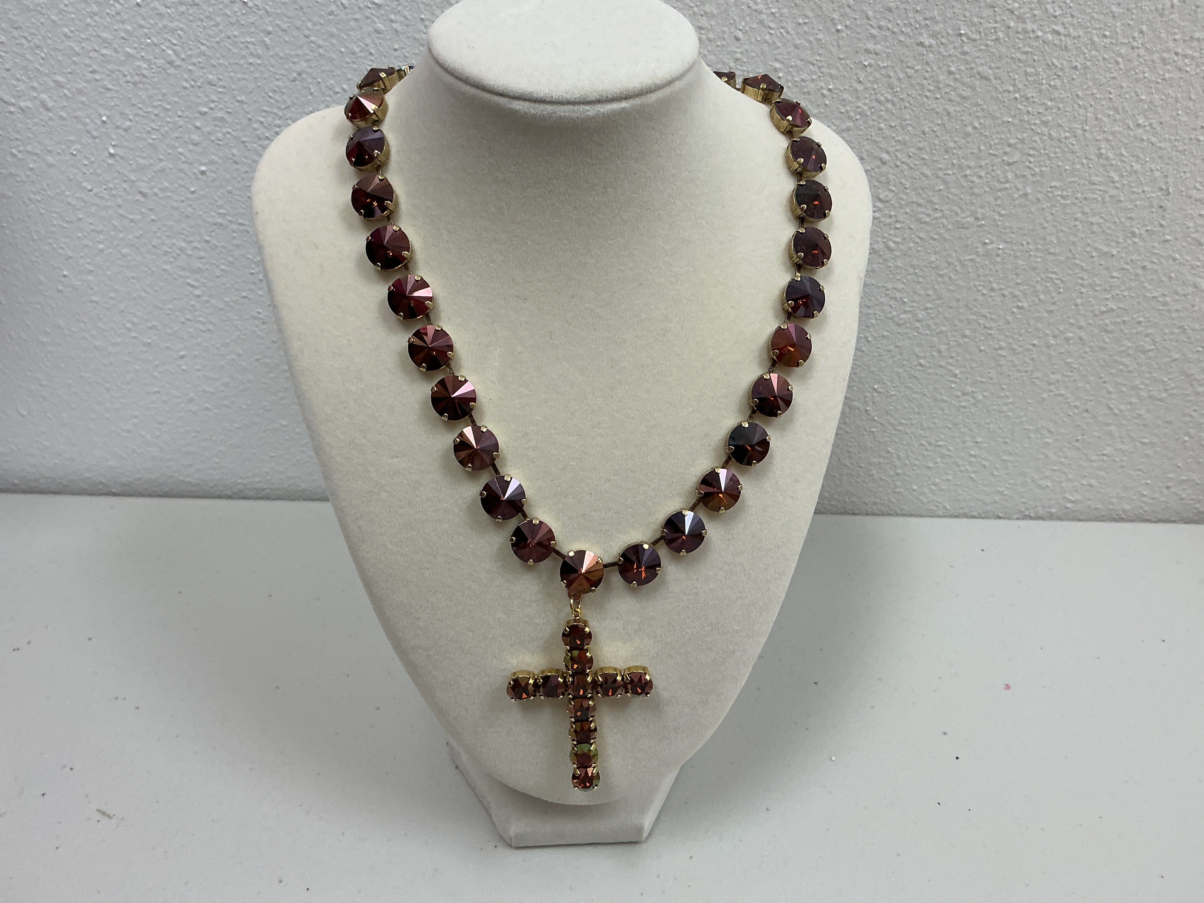 Liven up your look with the Baby Donatella Necklace in Chocolate! This sparkly stunner will have you turning heads, featuring high quality crystals and an antique gold-plated brass base metal made with love in Canada. Whether you're clinching a big deal or just looking to impress, this beauty's 14" chain, 4" extension and 1" drop will do the trick. Oh la la!