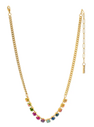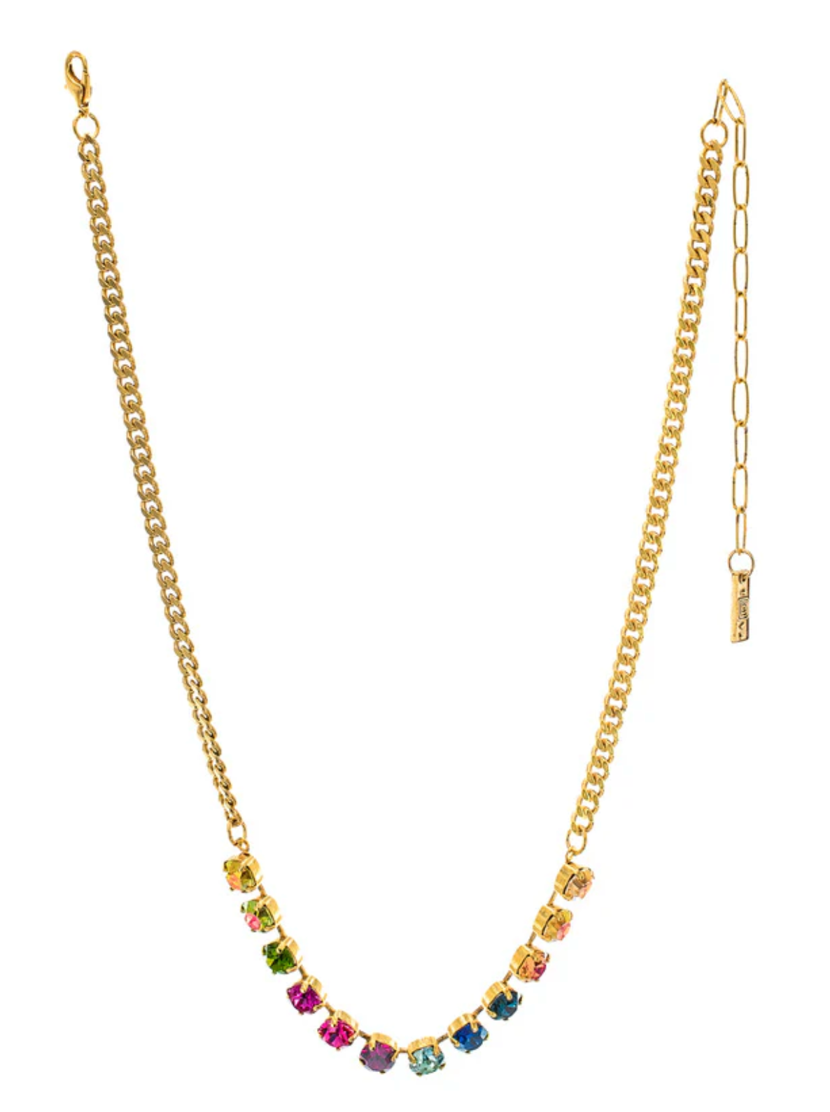 Glimmer and shine in this Mini Oakland in Bohemian Wonderland! This stunning necklace is gold-plated in brass, and lined with high-quality crystals. Perfect for any occasion, this 13" necklace with a 3" extension has you covered from day to night. Made in Canada for that extra special touch!