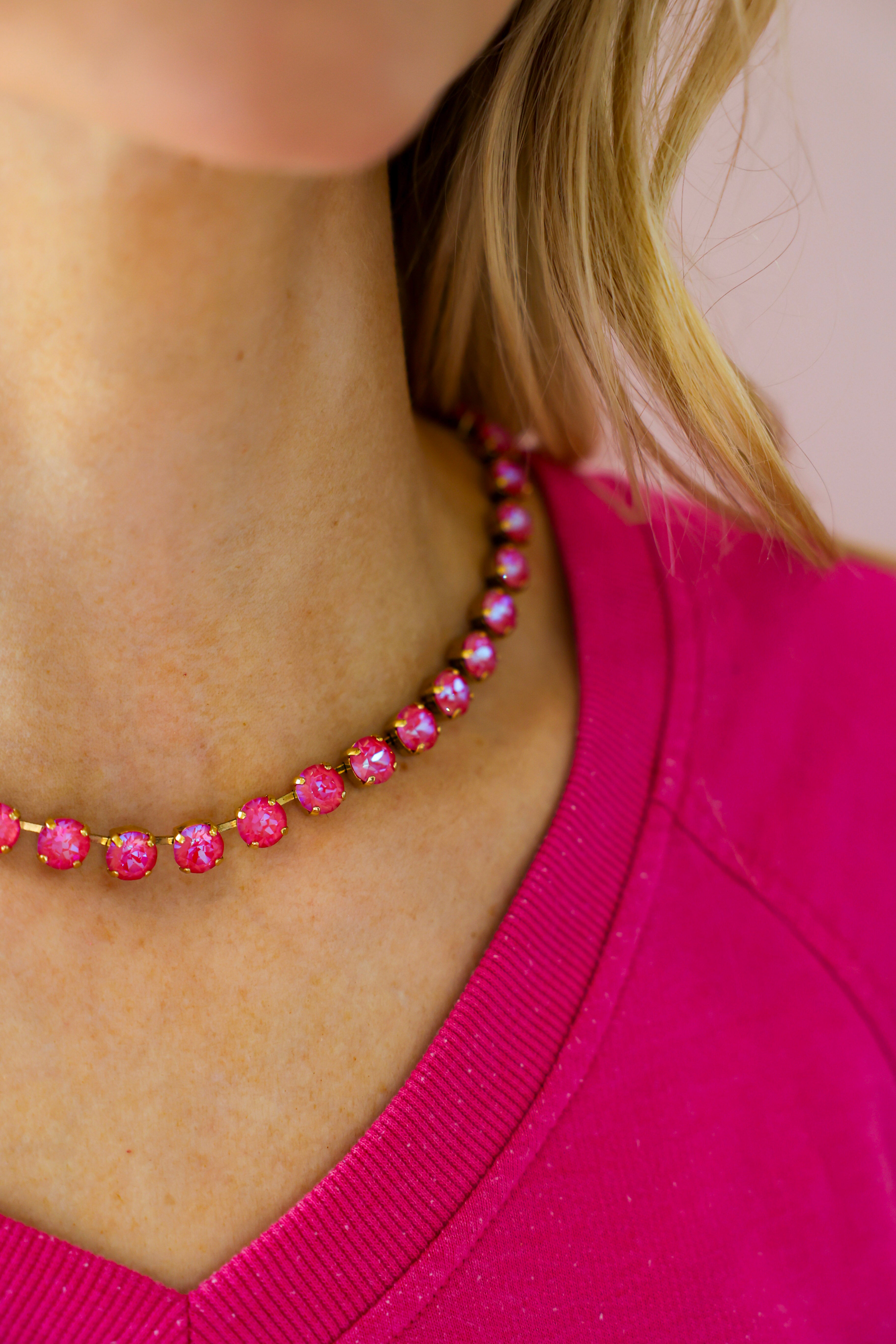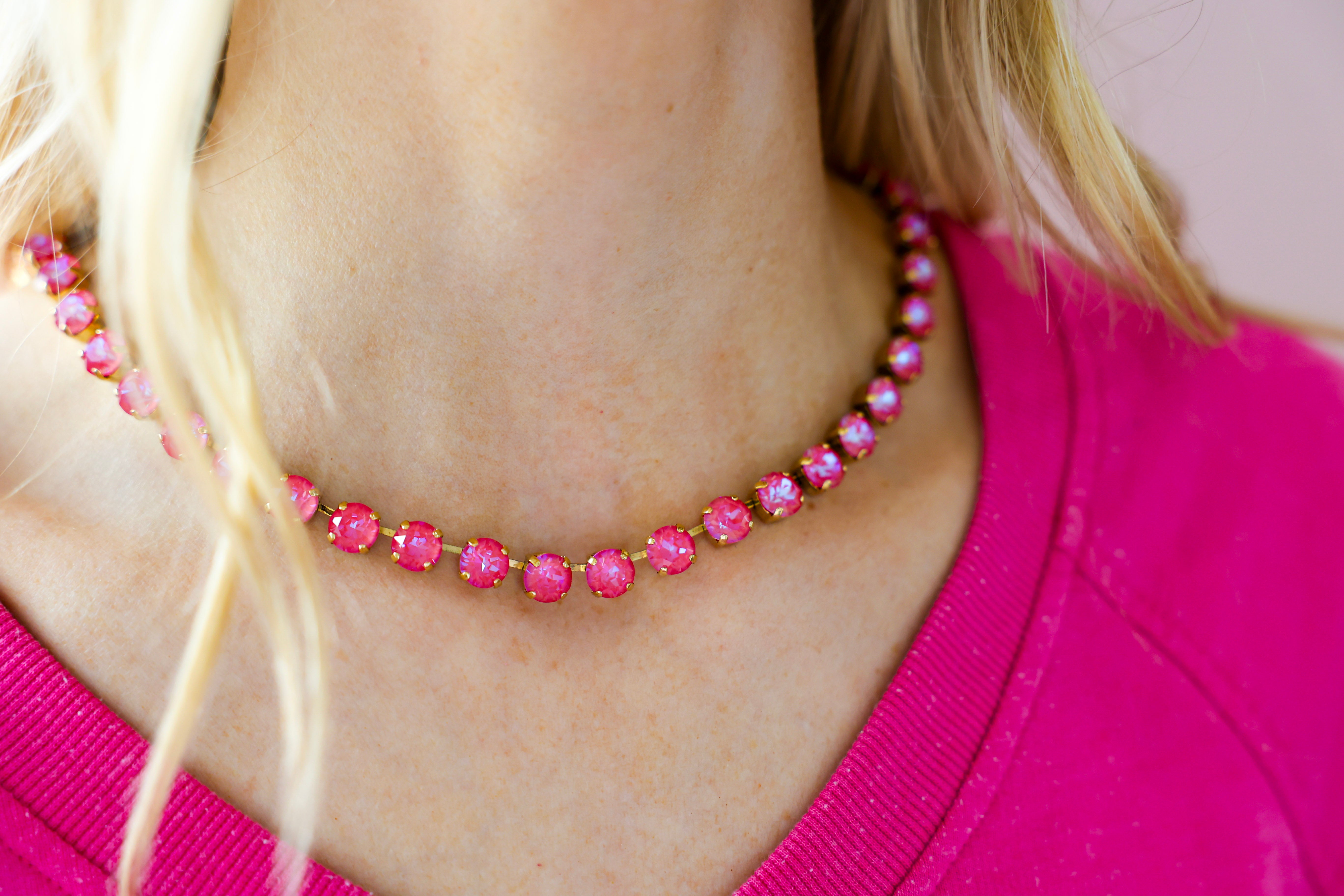 A TOVA fan-favorite and best seller, the TOVA Oakland Necklace – Lotus Pink Delight is a must-have for anyone who loves sparkly statement jewelry, bold pink accessories, and boutique pieces that instantly elevate an outfit. The perfect way to add a little extra shine to your everyday style! ✨