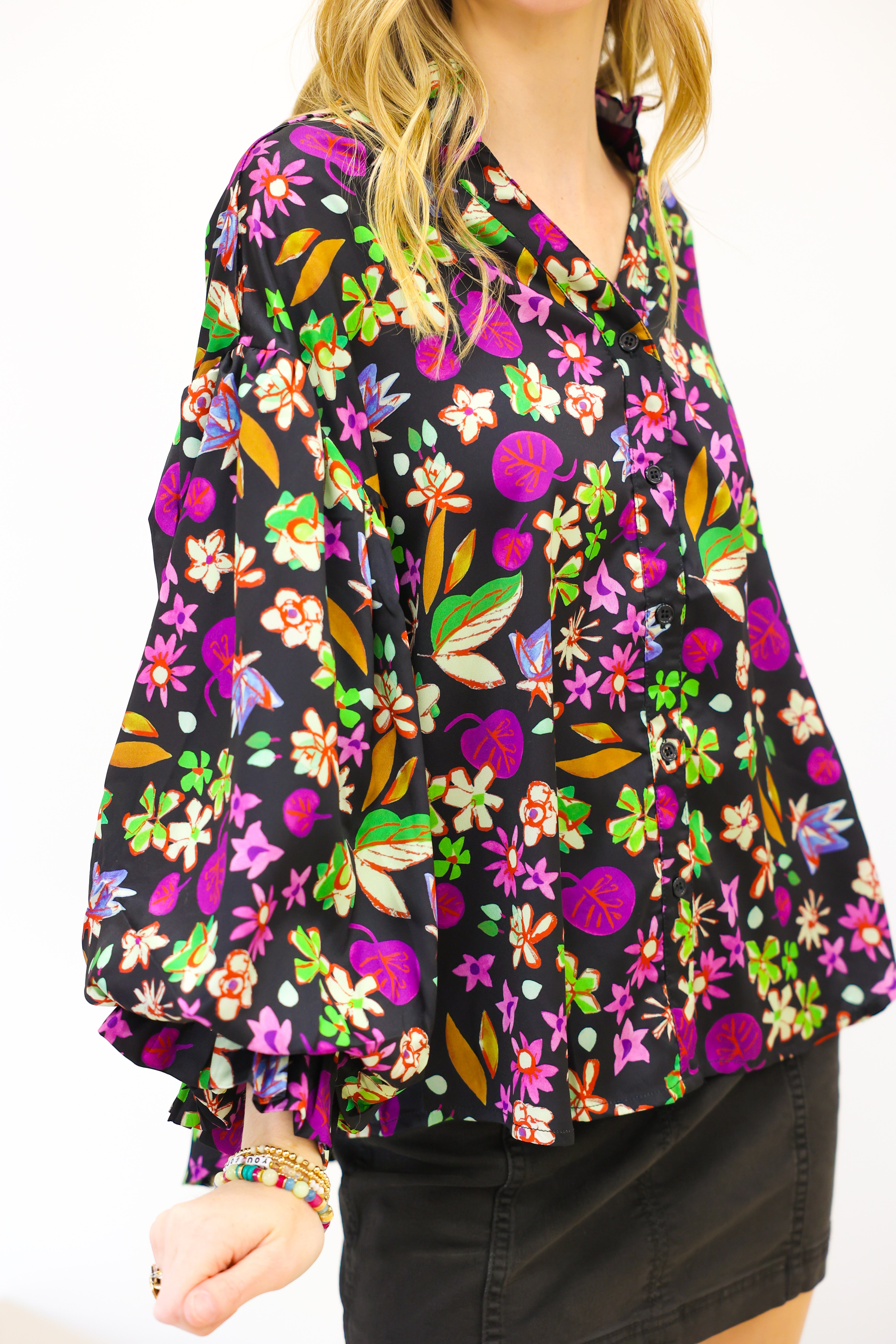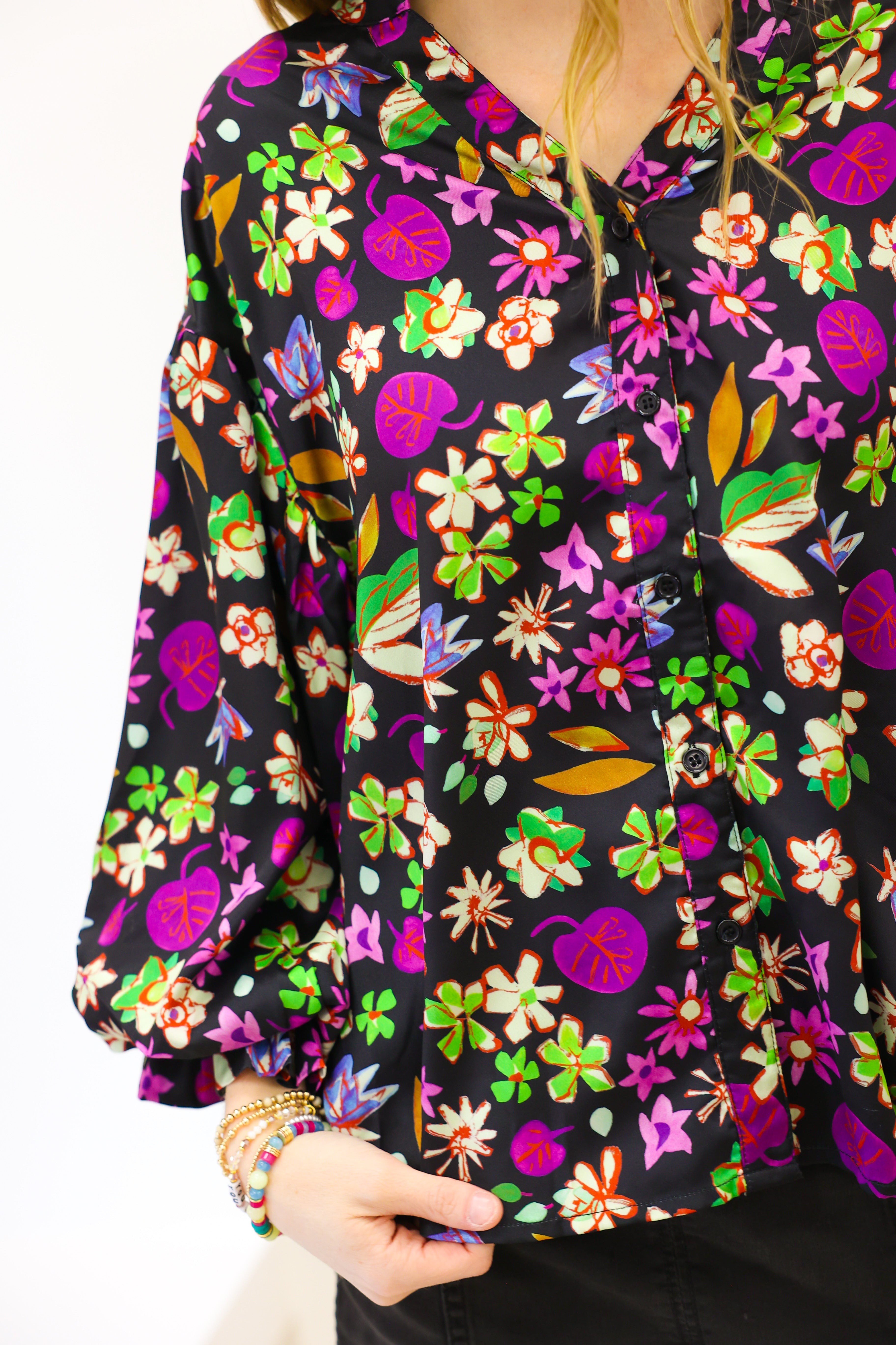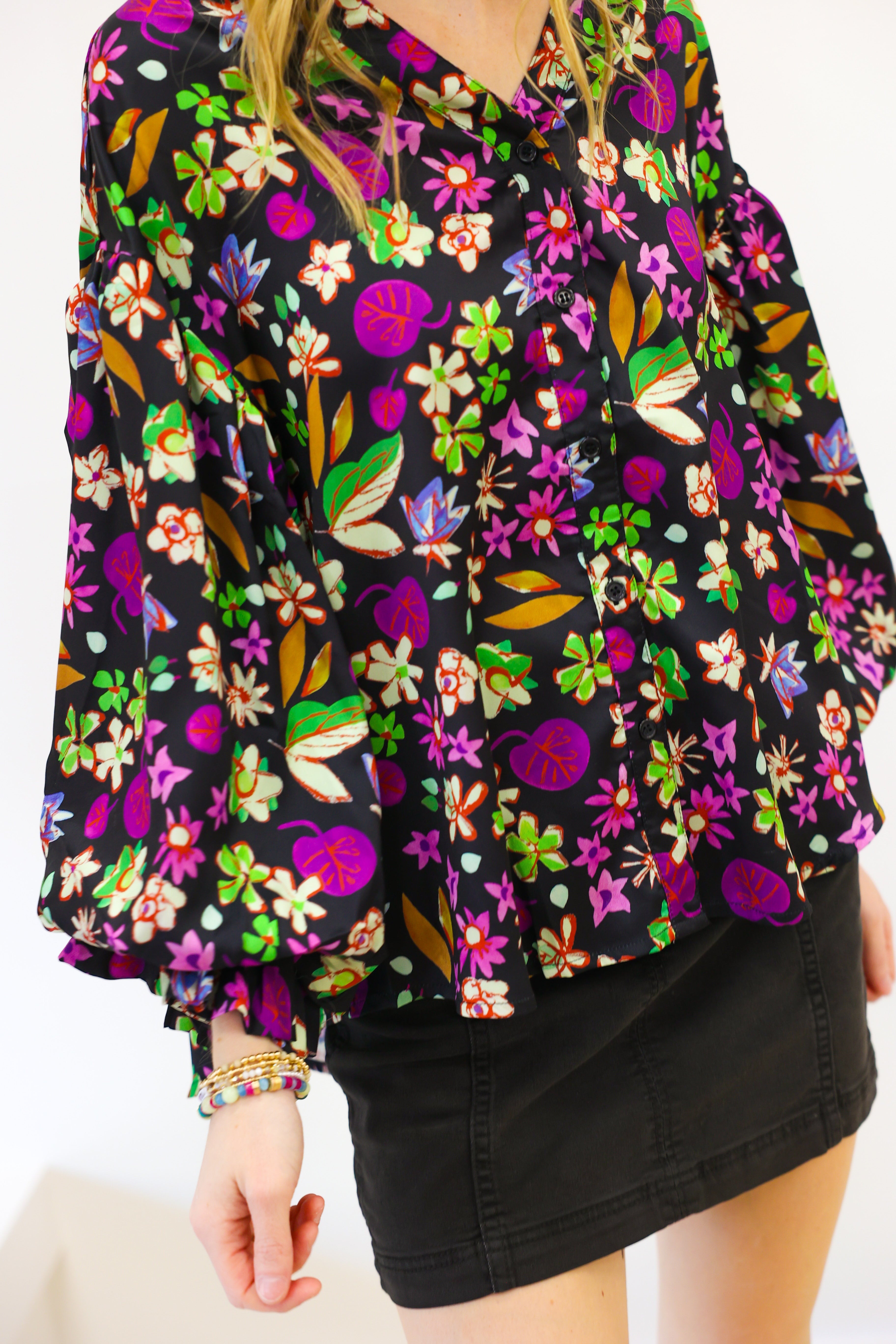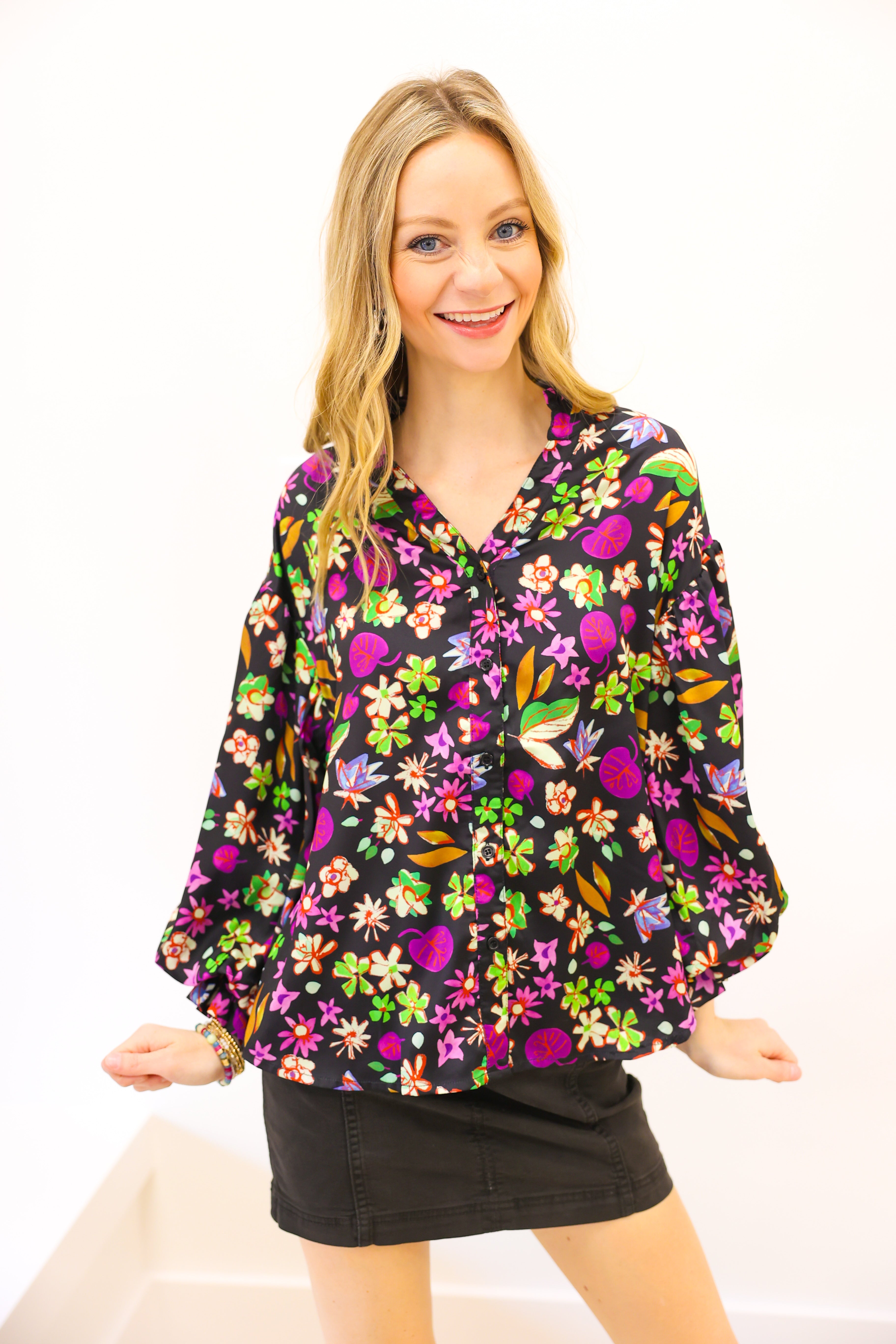 Elevate your wardrobe with the KARLIE Floral Satin Button Puff Sleeve Top. Its smooth satin fabric and delicate floral pattern bring subtle elegance, while the puff sleeves add a stylish, feminine flair. The button-down design offers easy wear and a flattering fit, perfect for both casual outings and special occasions. This top combines comfort and chic sophistication to refresh your look effortlessly.