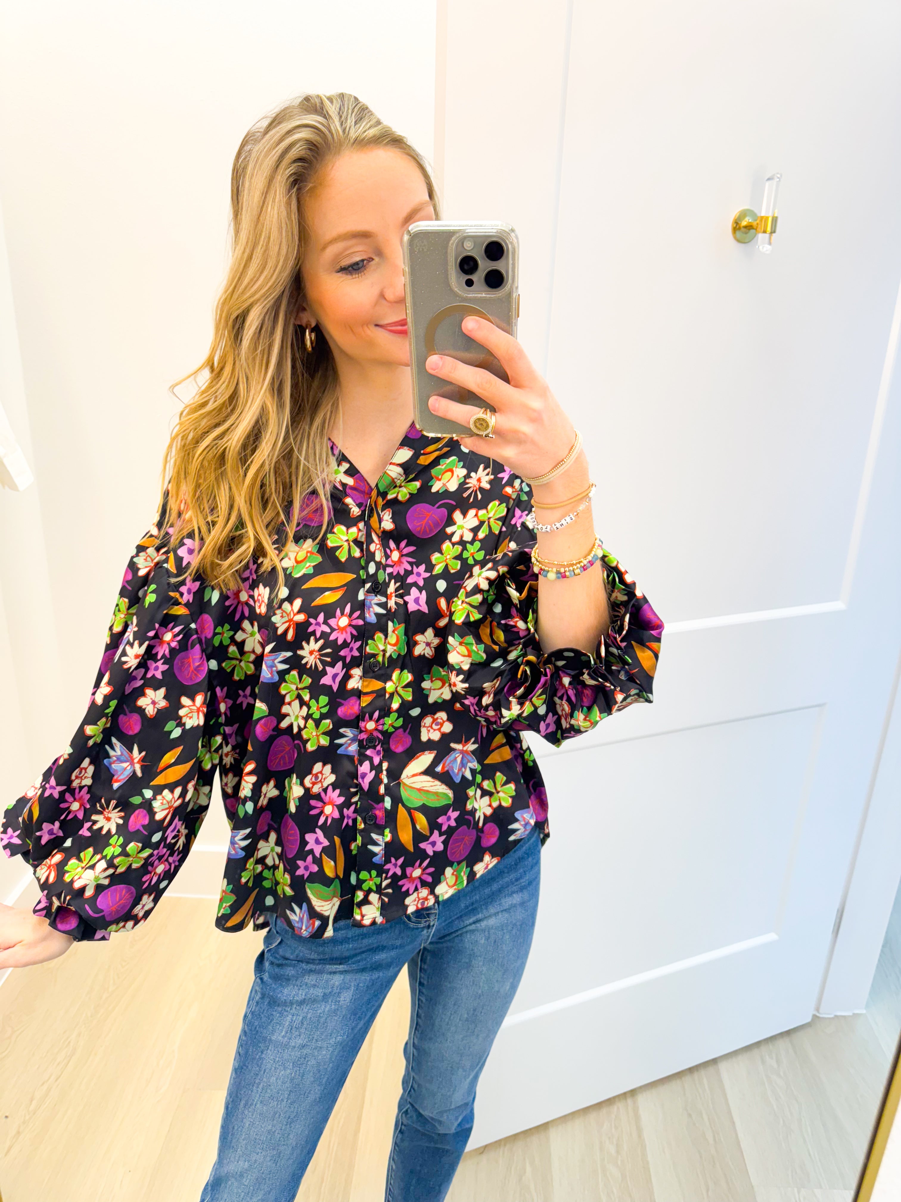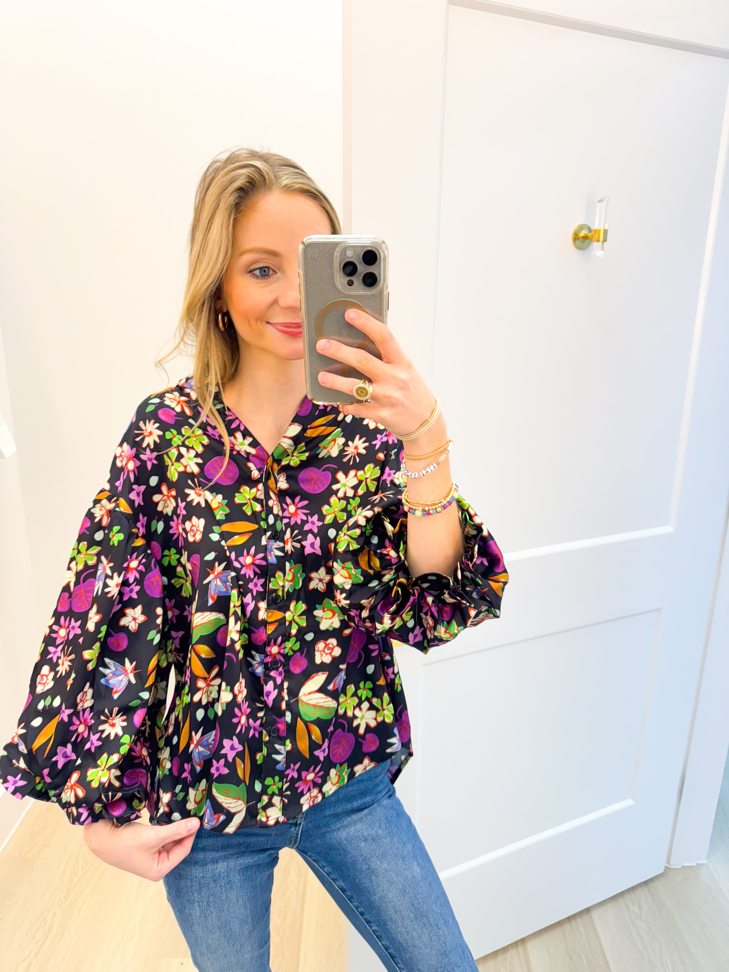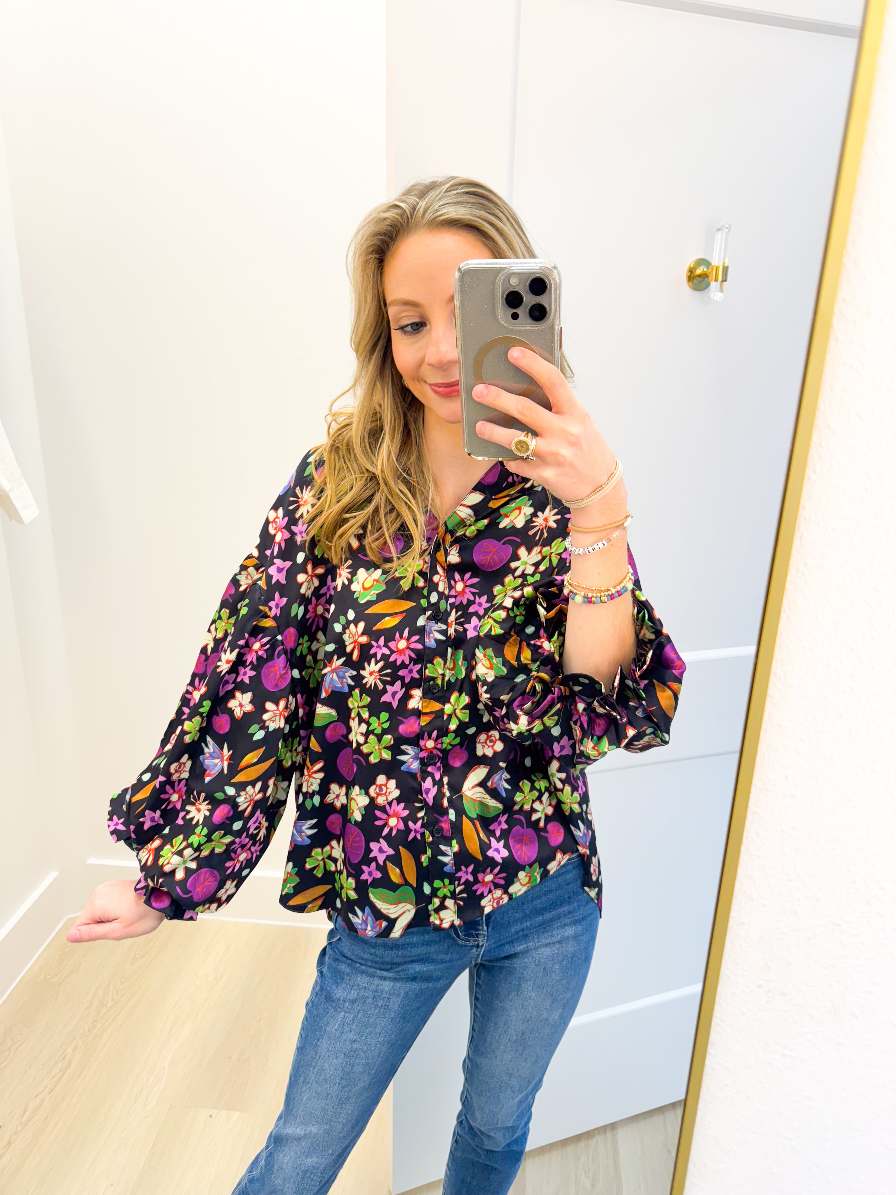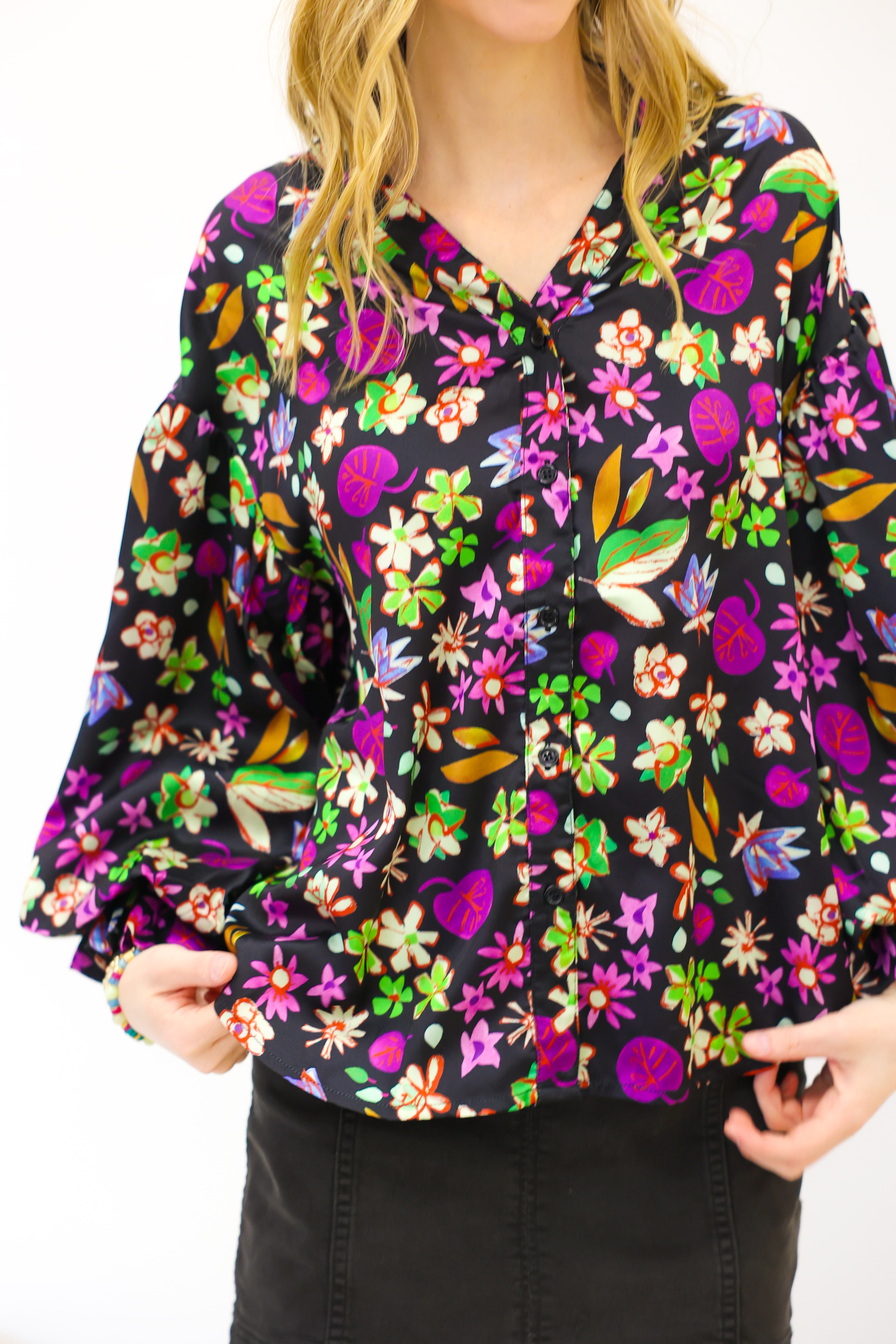 Elevate your wardrobe with the KARLIE Floral Satin Button Puff Sleeve Top. Its smooth satin fabric and delicate floral pattern bring subtle elegance, while the puff sleeves add a stylish, feminine flair. The button-down design offers easy wear and a flattering fit, perfect for both casual outings and special occasions. This top combines comfort and chic sophistication to refresh your look effortlessly.