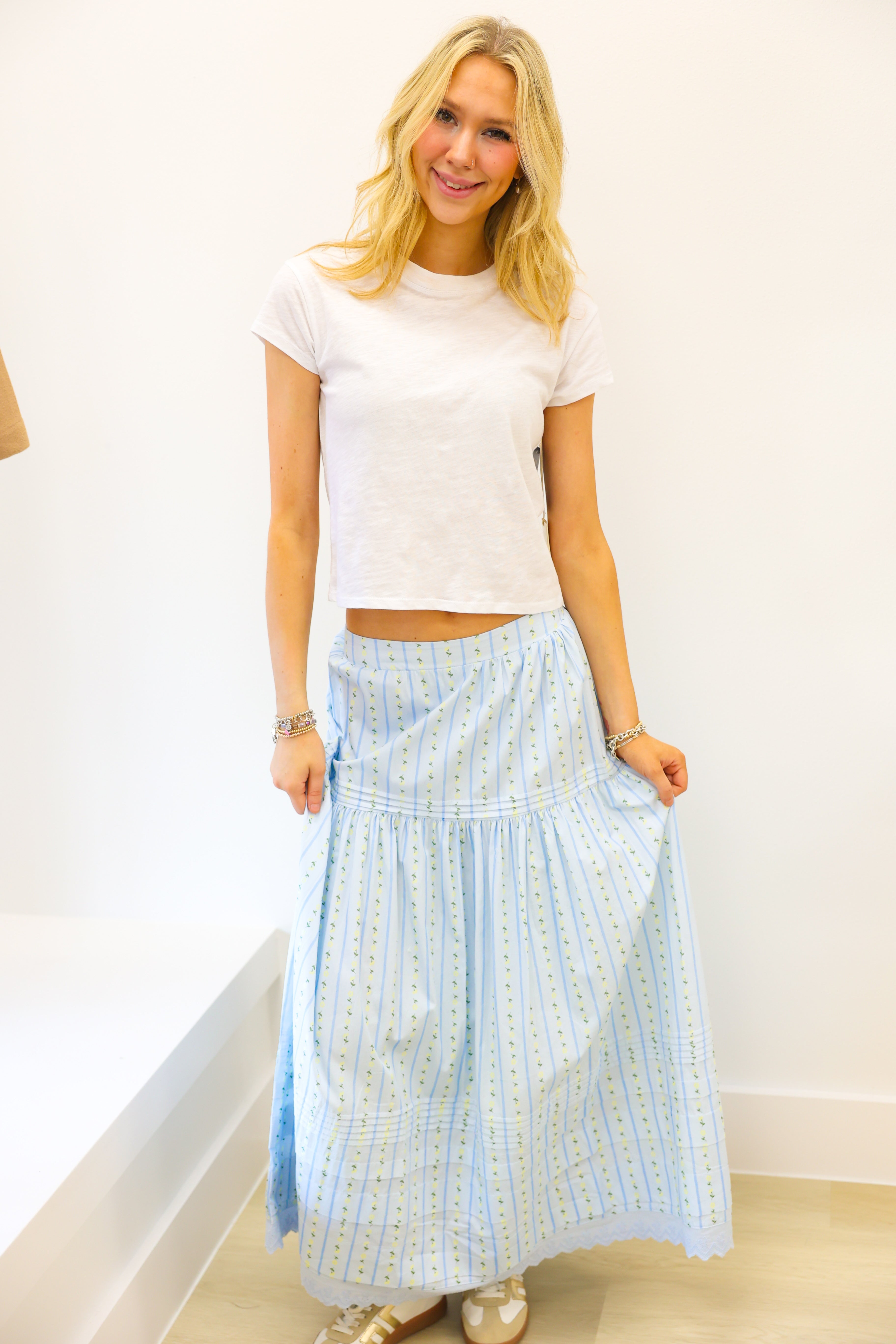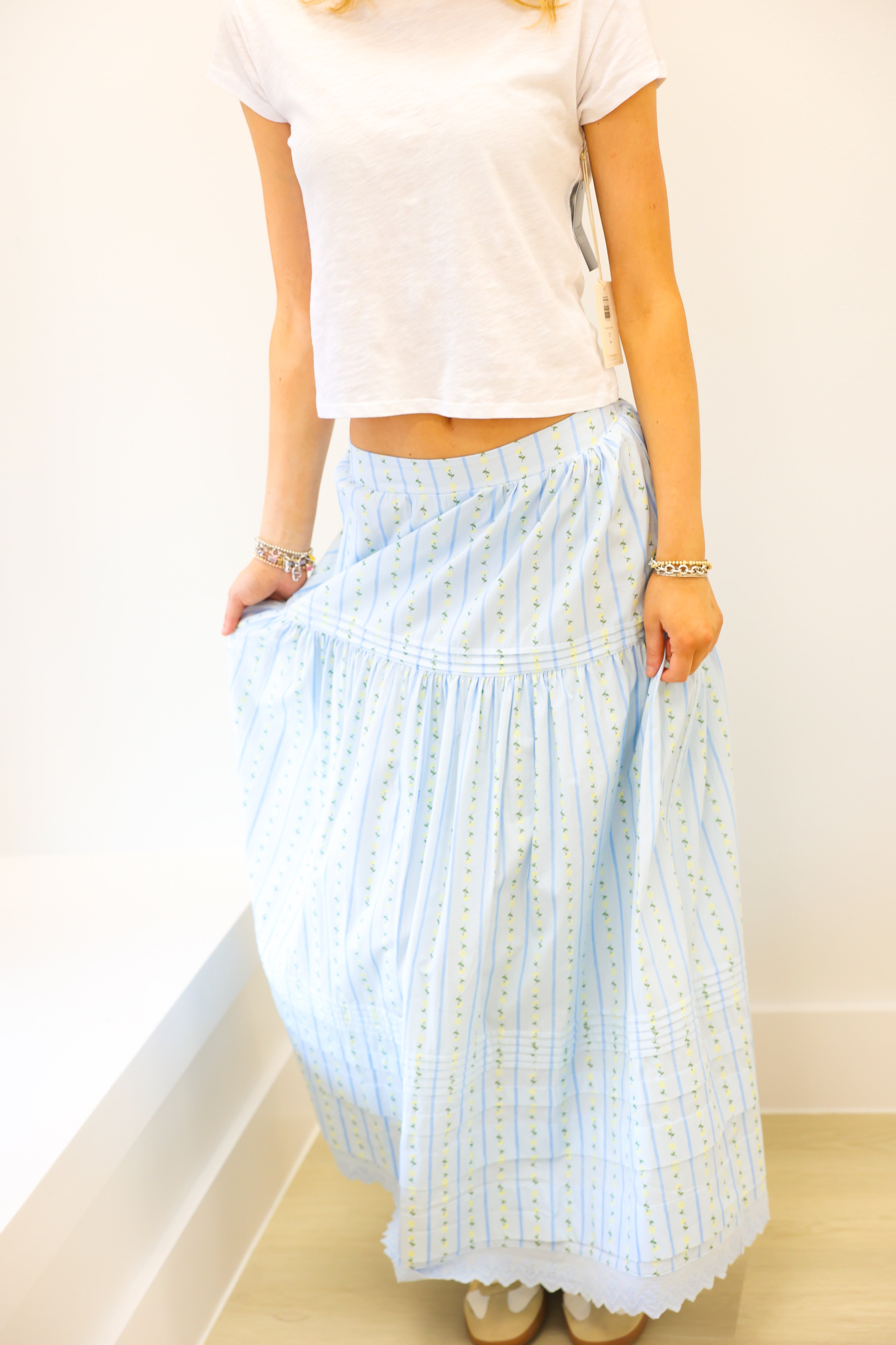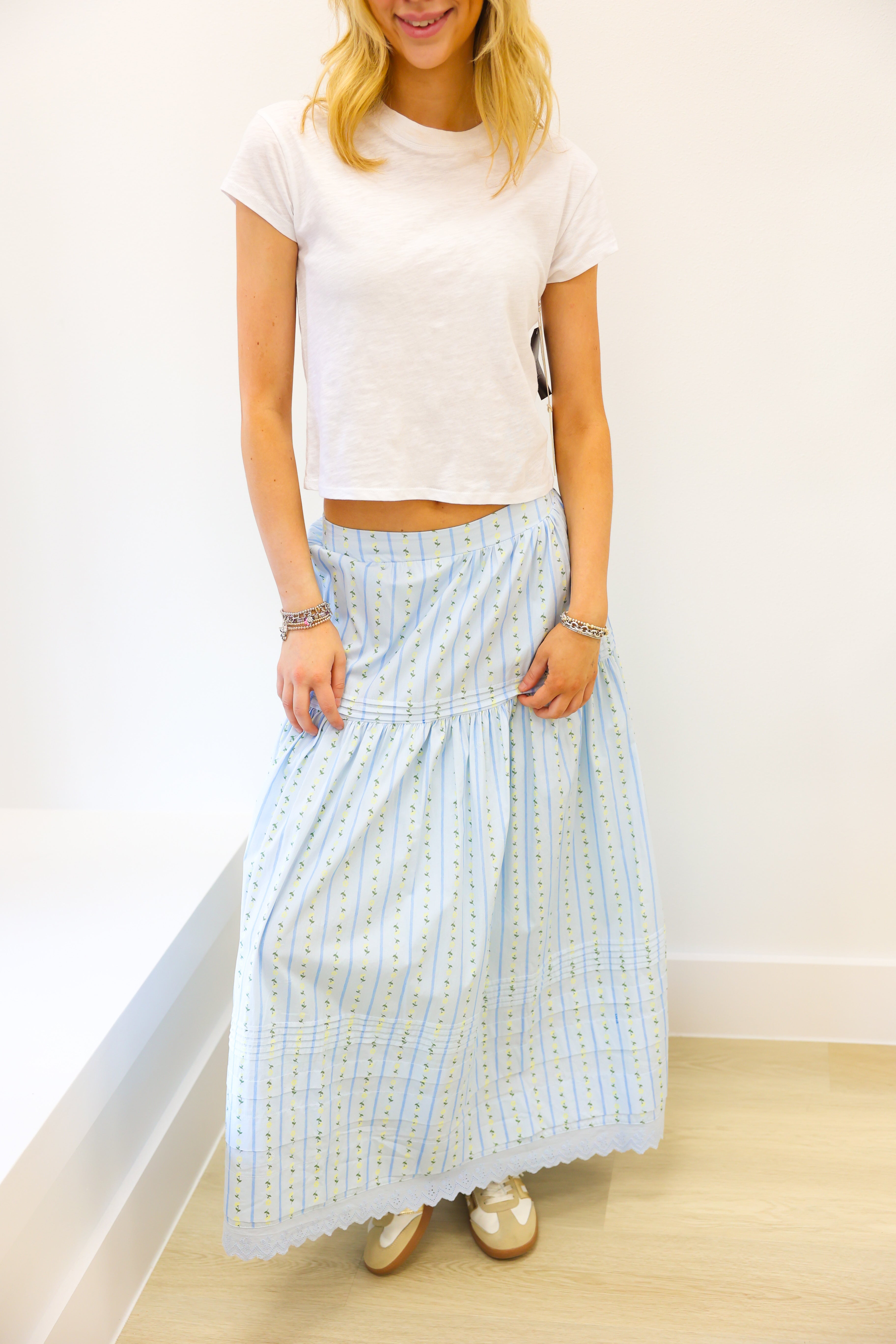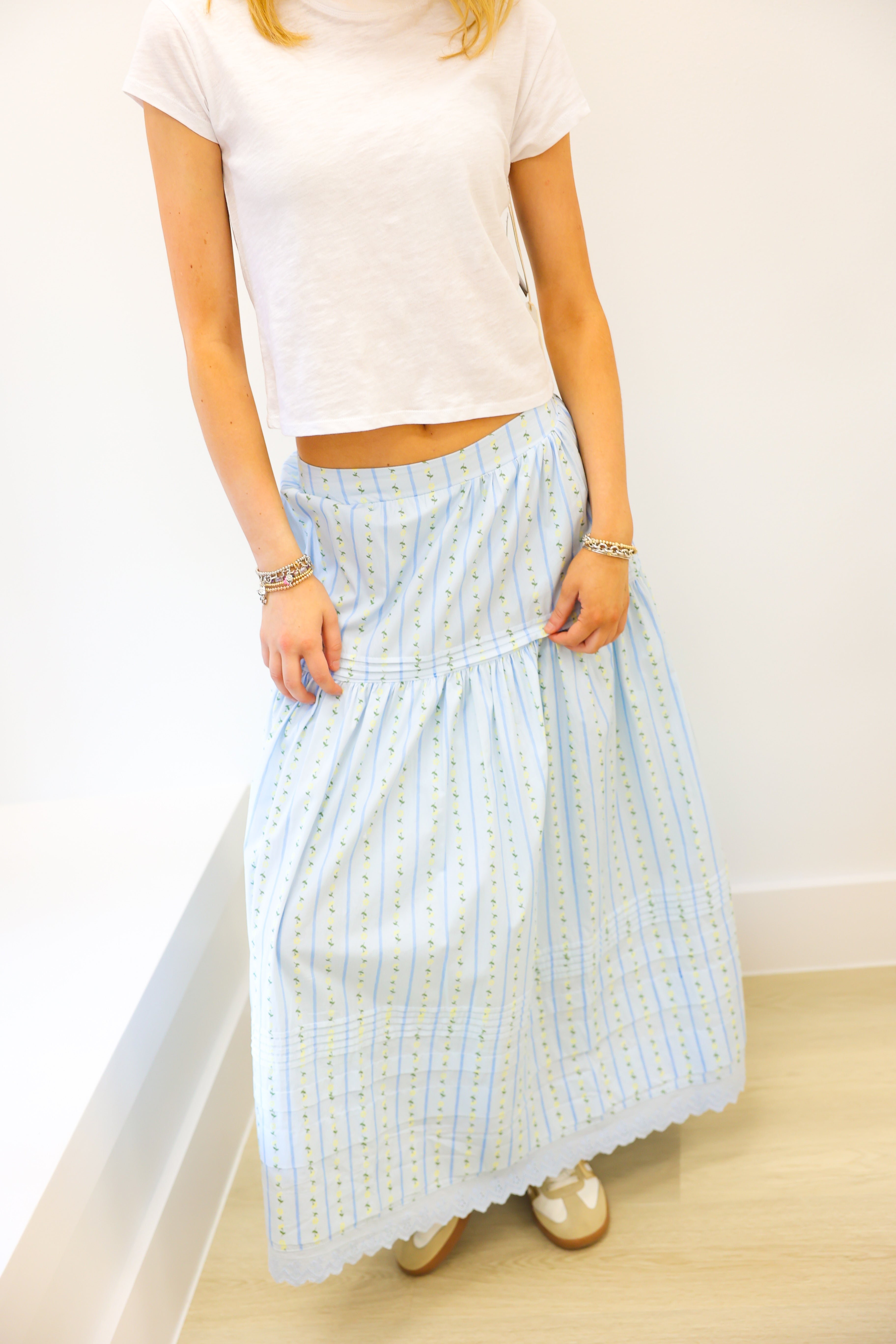 KARLIE Floral Stripe Maxi Skirt