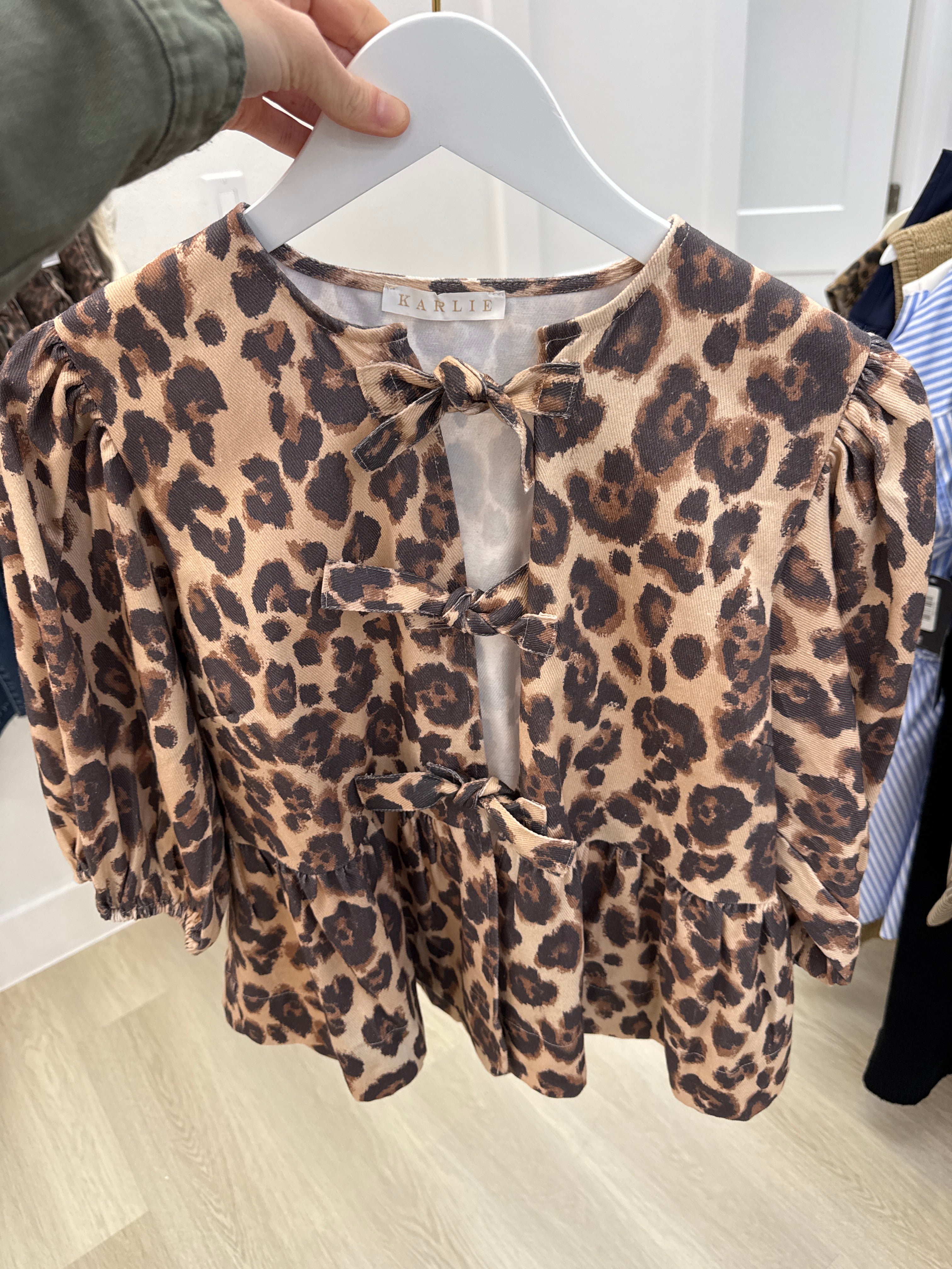 KARLIE Leopard Denim Knot Tie Top