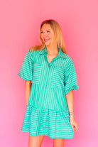 Step into effortless charm with the KARLIE Stripe Pocket Ana Ruffle Bottom Dress. Designed with a flattering striped pattern and playful ruffle detailing at the hem, this dress combines feminine flair with everyday comfort. Practical pockets add convenience without sacrificing style, making it your go-to choice for brunches, strolls, or casual gatherings. Elevate your look with a dress that’s as versatile as it is beautiful!