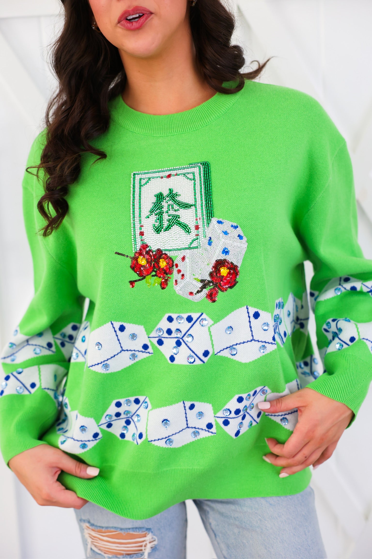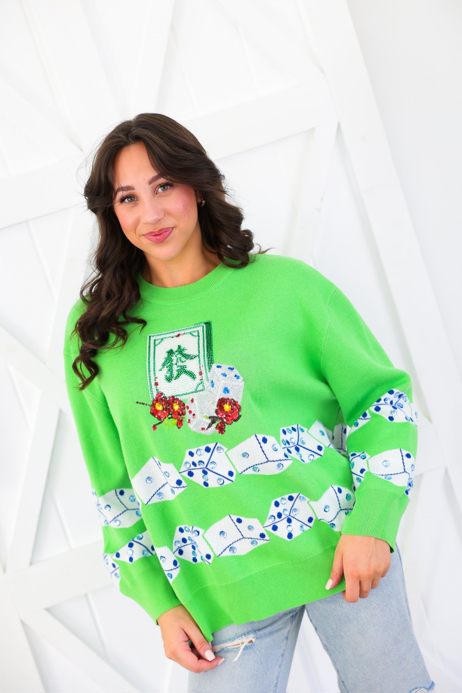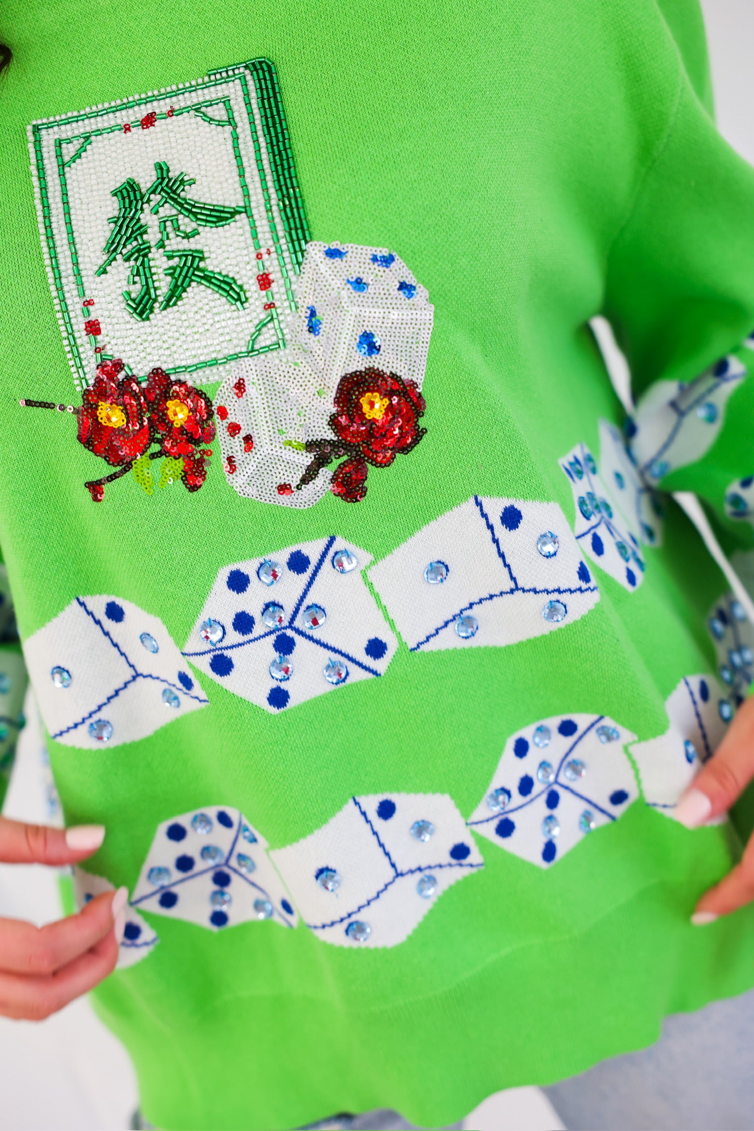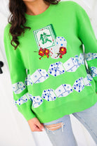 Green Mahjong Tile & Dice Sweater Queen of Sparkles