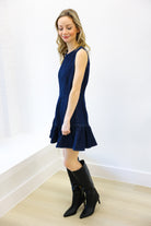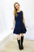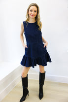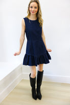 The Laurel dress in Moonlight is a denim ruffle dress in a romantic dark wash. Clean lines flare into feminine ruffles to created an elevated silhouette that can easily be dressed up or down.