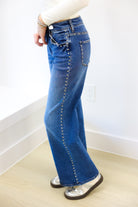 The Micah Studded Dear John Denim combines comfort and style with a mid-rise fit and a clean hem for a polished look. Crafted from a soft blend of 94% cotton, 4% polyester, and 2% spandex, these jeans offer stretch and durability for all-day wear. Featuring a 31-inch inseam and studded detailing, they add a subtly edgy touch to any outfit while maintaining versatile sophistication. Perfect for elevating casual looks with a flattering fit and lasting comfort!