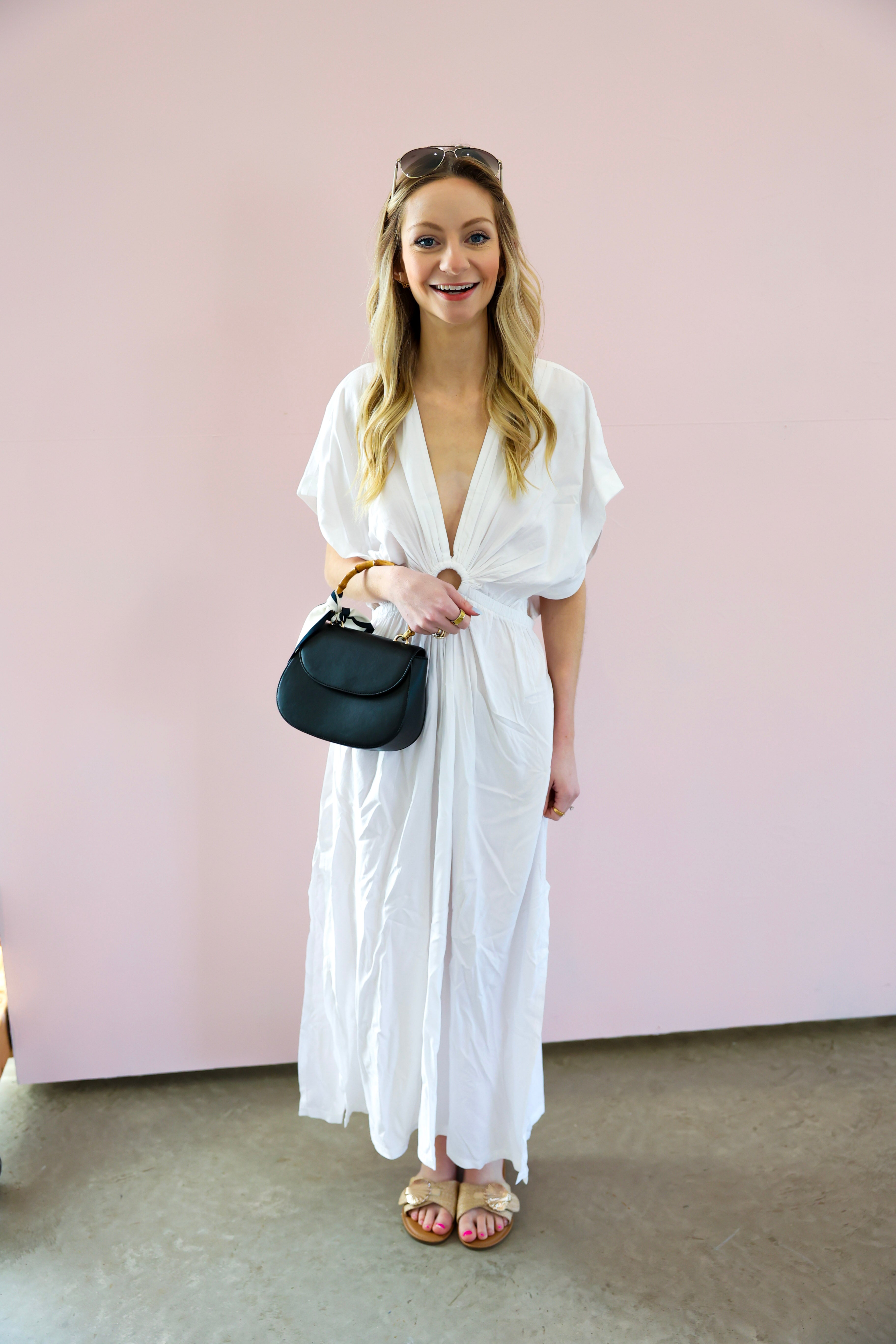 Pair with strappy sandals and a woven clutch for a chic resort look, or dress it up with wedges and statement earrings for a summer evening out.