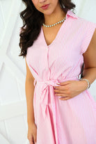 Sweet Escape Tie-Waist Dress – Pink Stripe