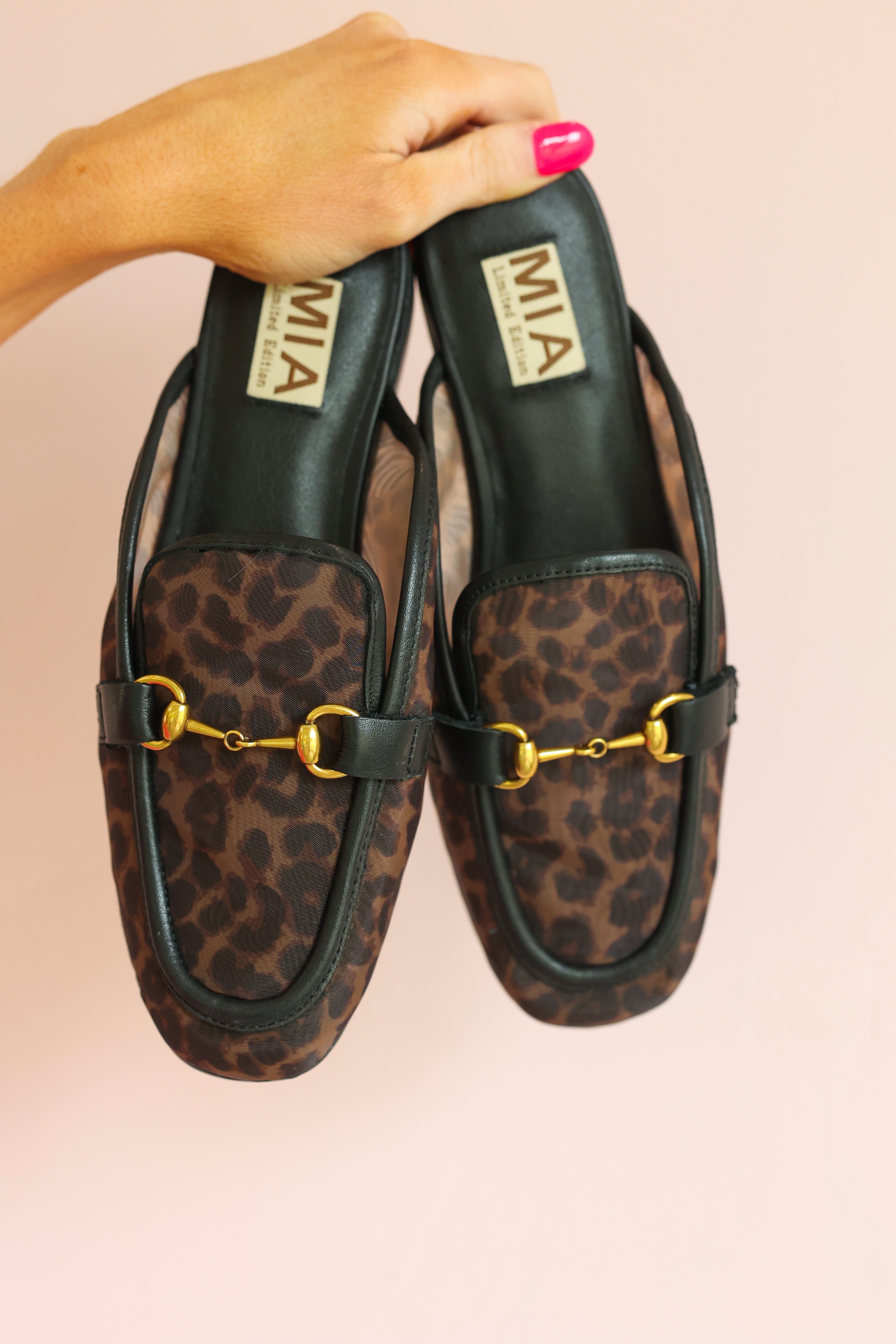 Effortlessly chic with a bold edge, the Leopard Bouquet Flat by MIA brings together classic loafer styling and trend-forward details. Featuring a sleek slip-on mule silhouette, this style is elevated with a luxe gold horsebit accent and a rich leopard print that adds instant personality to any outfit.