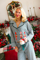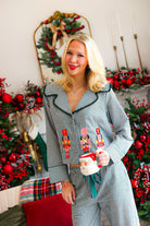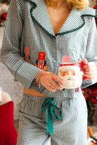 The Gingham Nutcracker Set is designed for effortless style and comfort. Wear the top alone for a refined, dressed-up look, or pair it with the matching bottoms for a relaxed, cozy lounge outfit. Perfect for versatile wear, this set adapts to your day-to-night needs with ease.