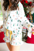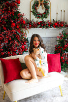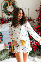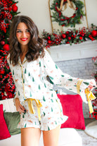 Celebrate the holiday season in comfort and style with the Christmas Tree & Bow PJ Set. This festive set features a charming Christmas tree and bow design that brings holiday cheer to your loungewear. Made from soft, breathable fabric, it's perfect for cozy nights and joyful mornings. Delight in the perfect blend of warmth and holiday spirit with this must-have seasonal set.