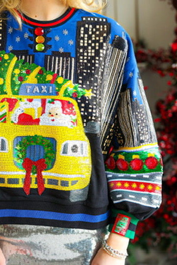 Christmas Taxi NYC Scene Sweatshirt Queen of Sparkles