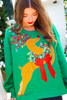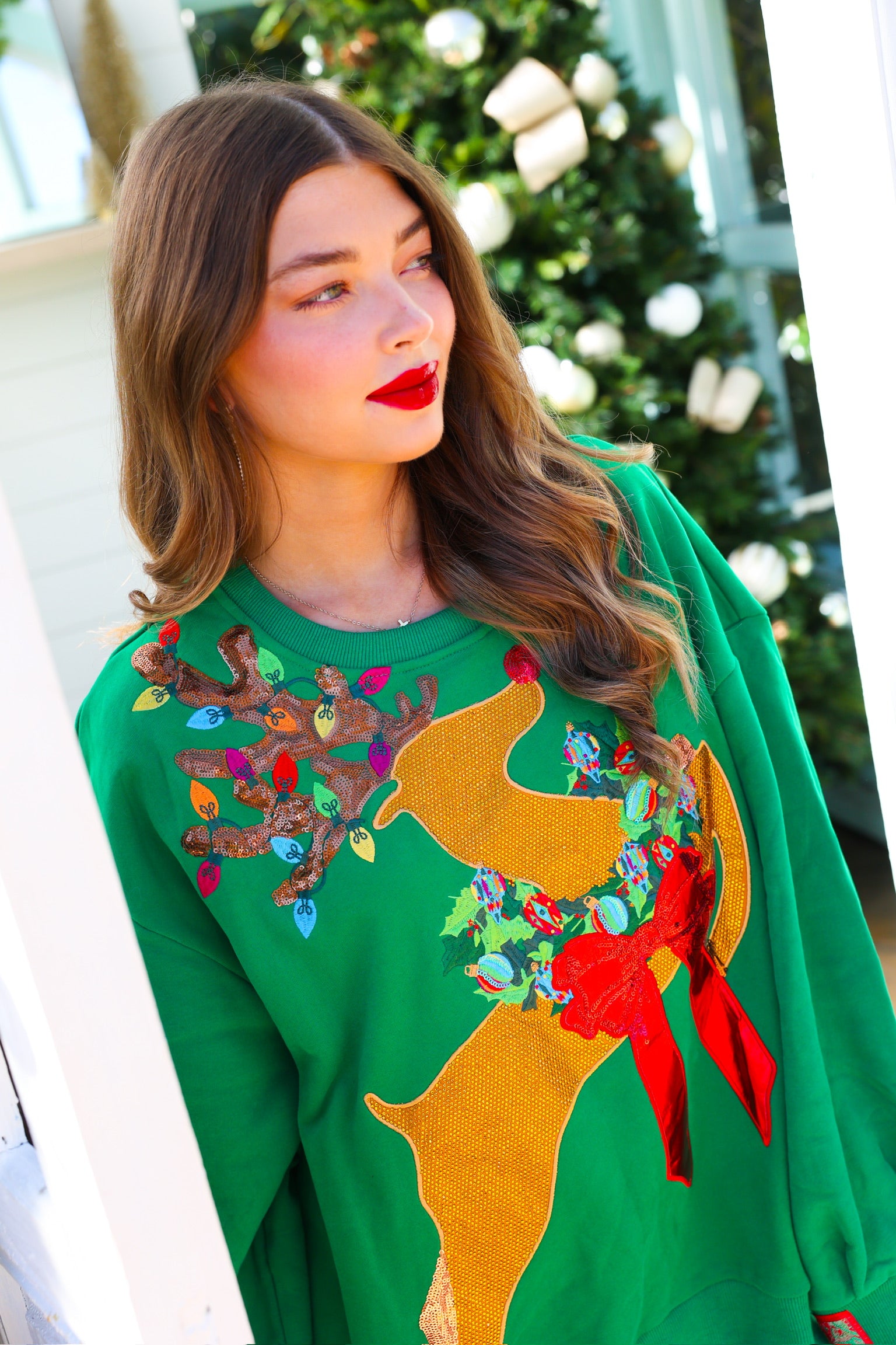Green Rhinestone Rudolph Wearing A Wreath Sweatshirt Queen of Sparkles