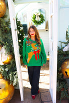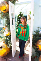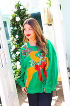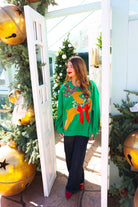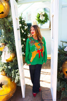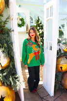Celebrate the festive season in style with the Green Rhinestone Rudolph Wearing A Wreath Sweatshirt from Queen of Sparkles. This eye-catching sweatshirt features a sparkling rhinestone Rudolph decked out with a charming wreath, bringing holiday cheer to your wardrobe. Perfect for cozy winter days or standout holiday gatherings, its vibrant green color and dazzling details make you the center of every celebration. Stay warm while shining bright and spreading holiday joy wherever you go.