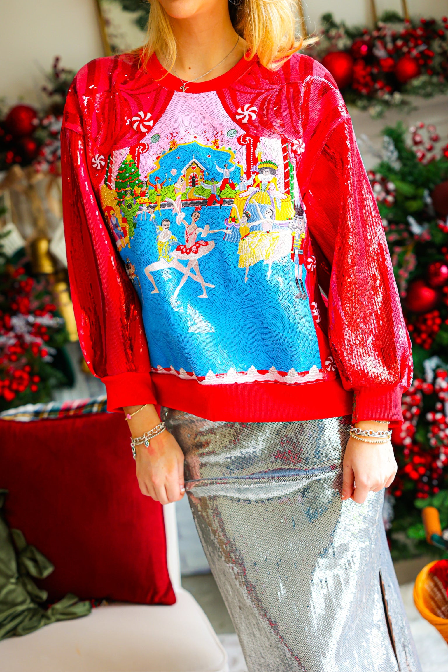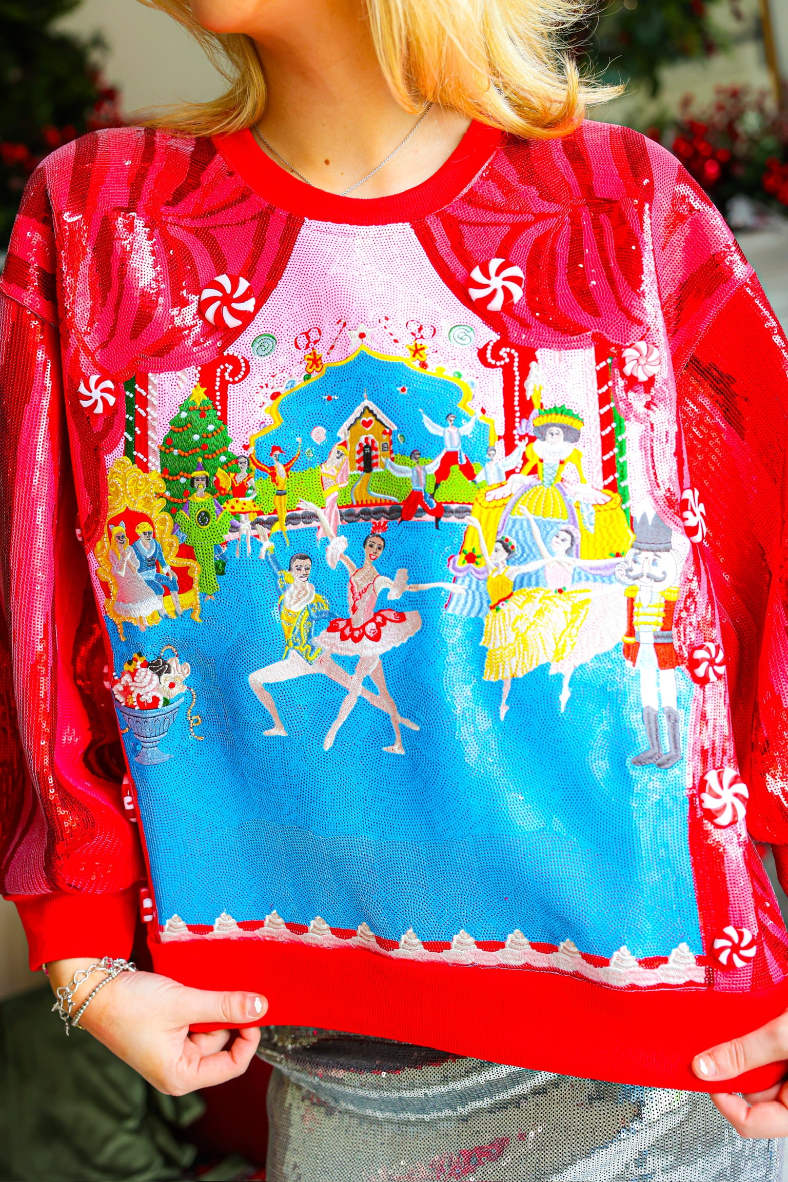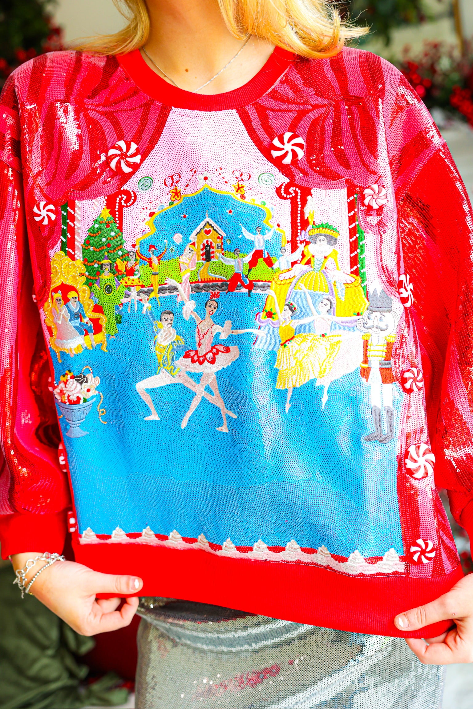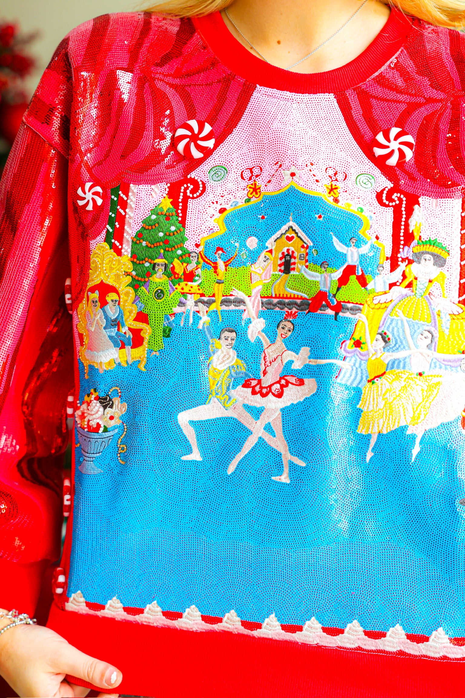Red Nutcracker Ballet Stage Scene Sweatshirt Queen of Sparkles