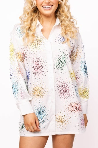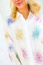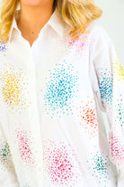 White Multi Splatter Button Up Cotton Dress Queen of Sparkles