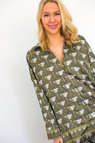 Unwind in total martini-night luxury with the Show Me Your Mumu Dirty Martini PJ Set! This silky satin charmeuse lounge set features an irresistible all-over dirty martini print β olives, glasses, and all β giving your cozy nights a playful, elevated twist. Whether youβre sipping a cocktail on the couch or slipping into the comfiest sleep ever, this set delivers breathable comfort, a relaxed fit, and a chic, put-together look. πΈπ€