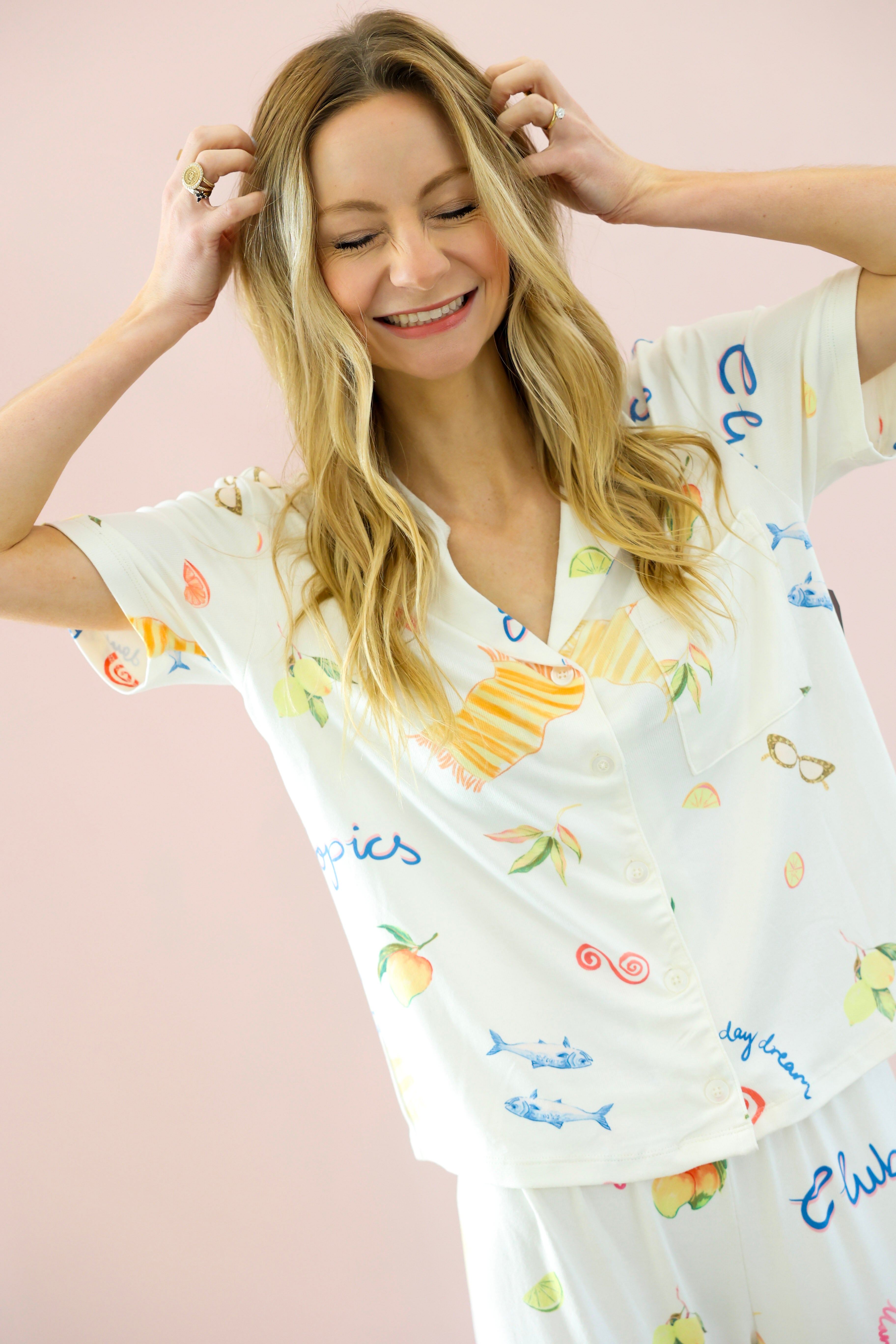 Easy, breezy, and made for slow mornings. The Beach Days PJ Top features a relaxed button-front silhouette in a soft, lightweight fabrication that feels as good as it looks. With its vintage-inspired tropical print, this top is perfect for lounging at home or styling beyond the bedroom.