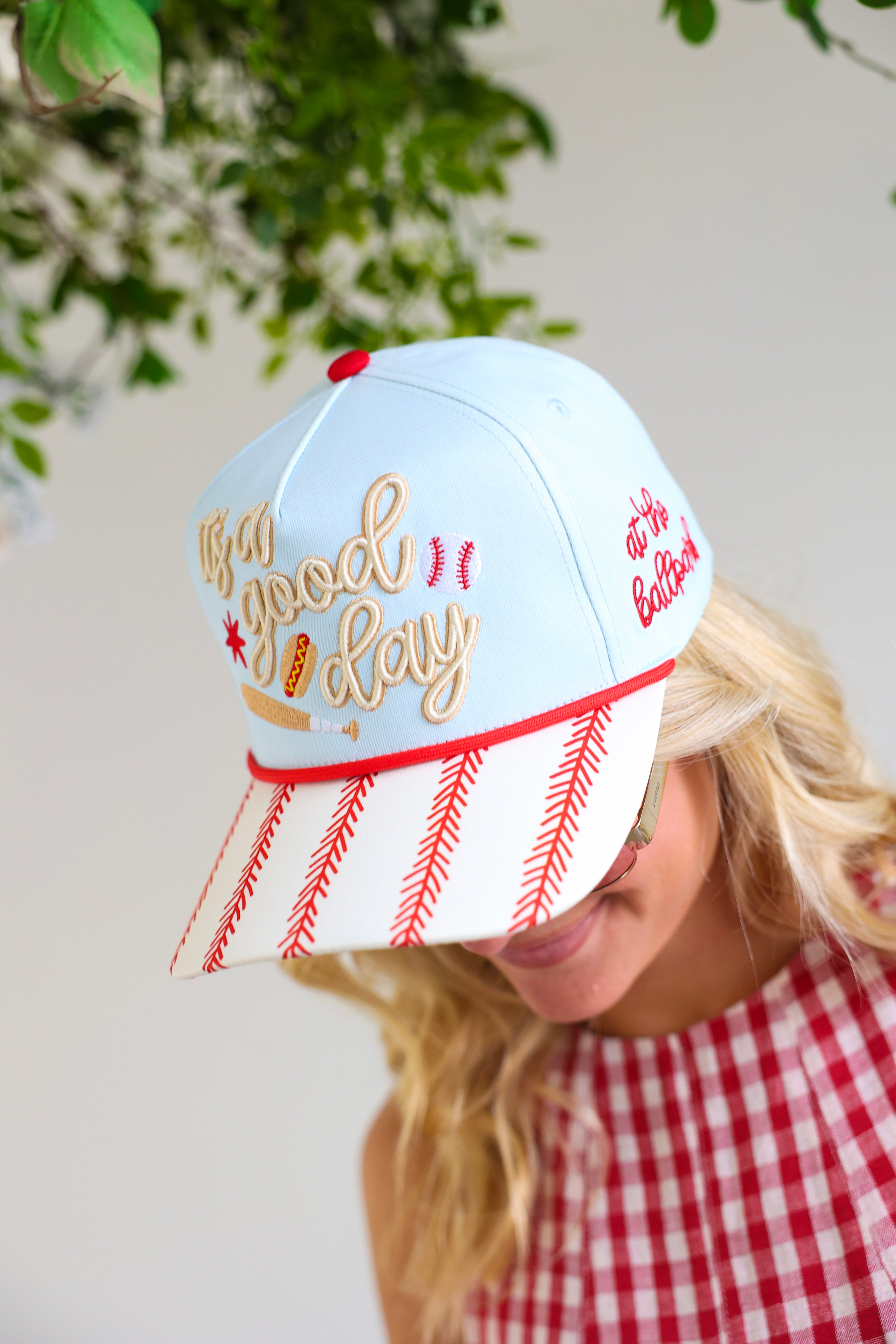 The Baseball “It’s a Good Day” Hat is the ultimate game-day accessory for baseball moms, girlfriends, and fans who love to show up in style. Featuring embroidered “It’s a Good Day” lettering with baseball-inspired details, this statement cap brings sporty charm with a girly twist.