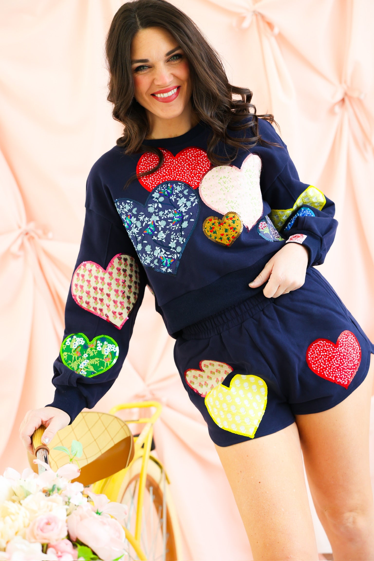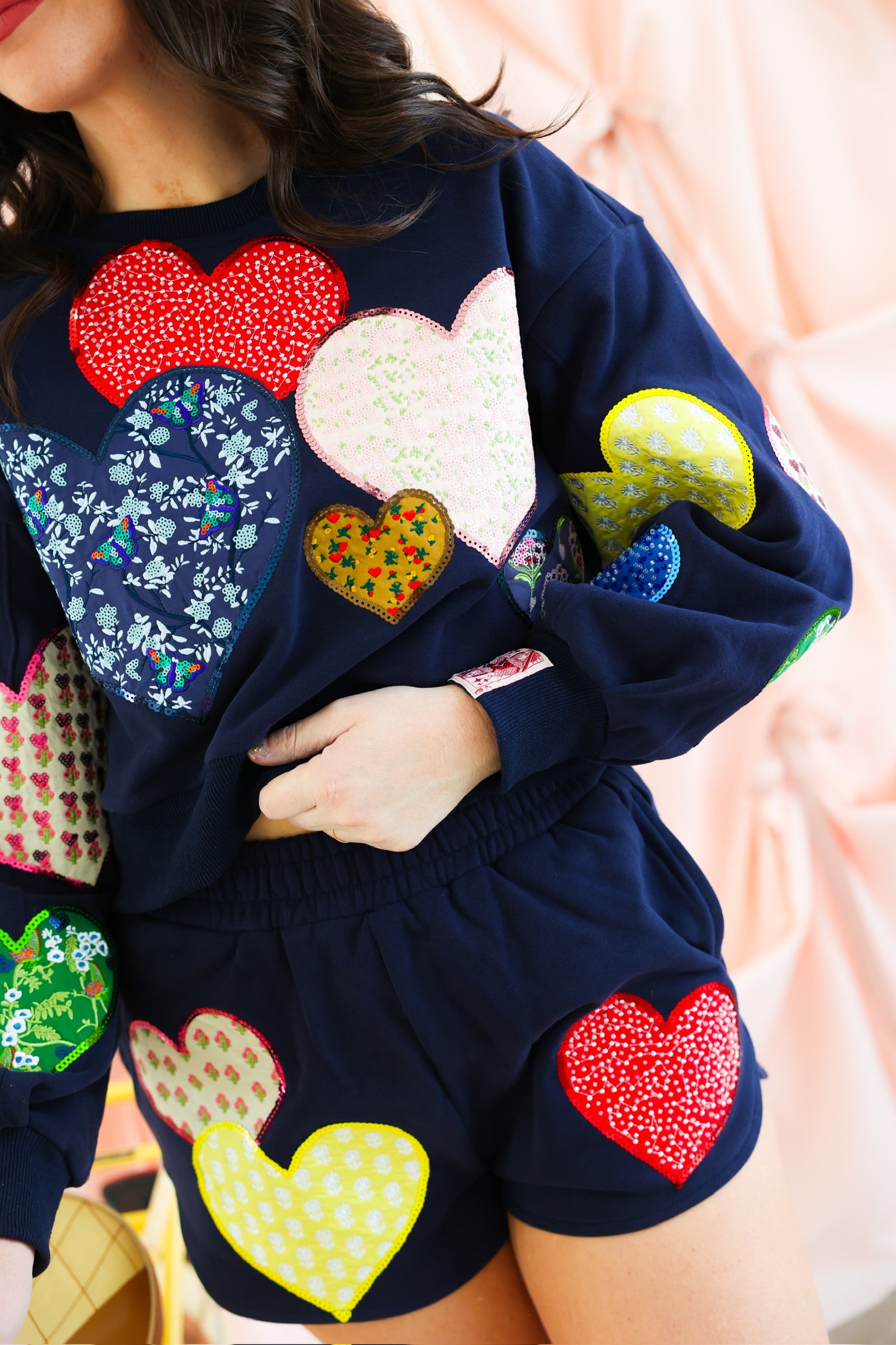 Queen of Sparkles Navy Multi Embroidered Hearts Sweatshirt