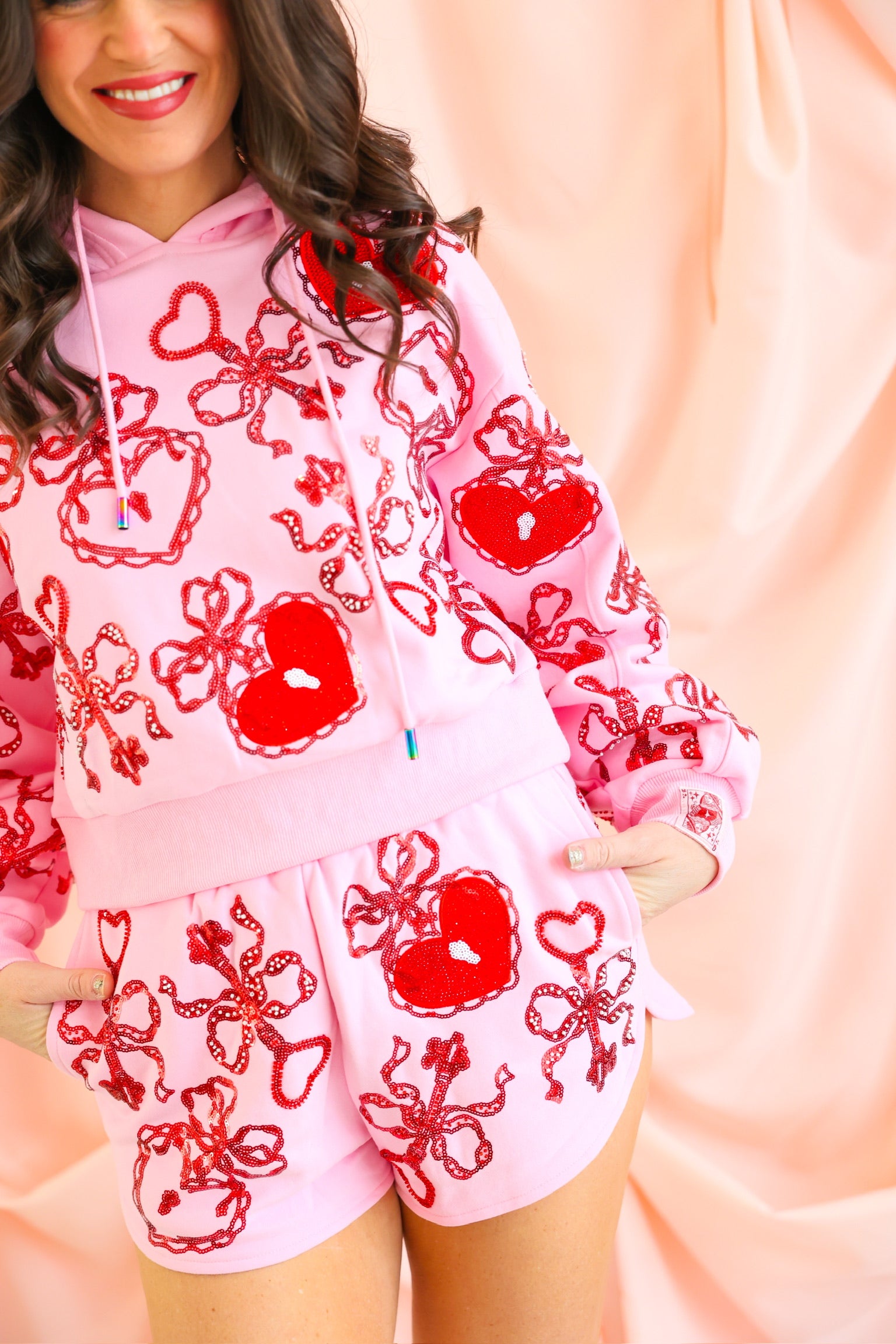 Queen of Sparkles Pink & Red Heart Lock & Key Shorts