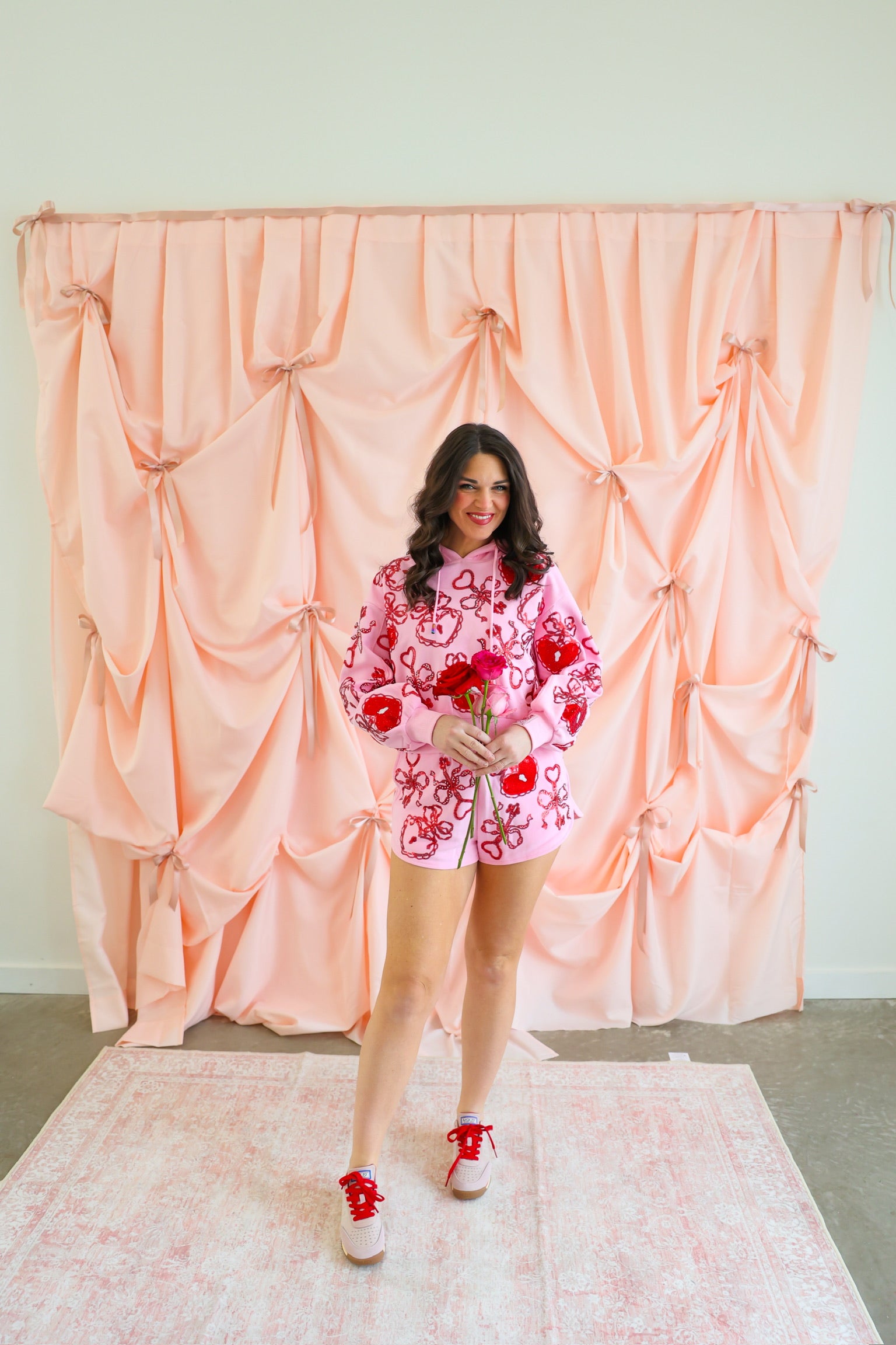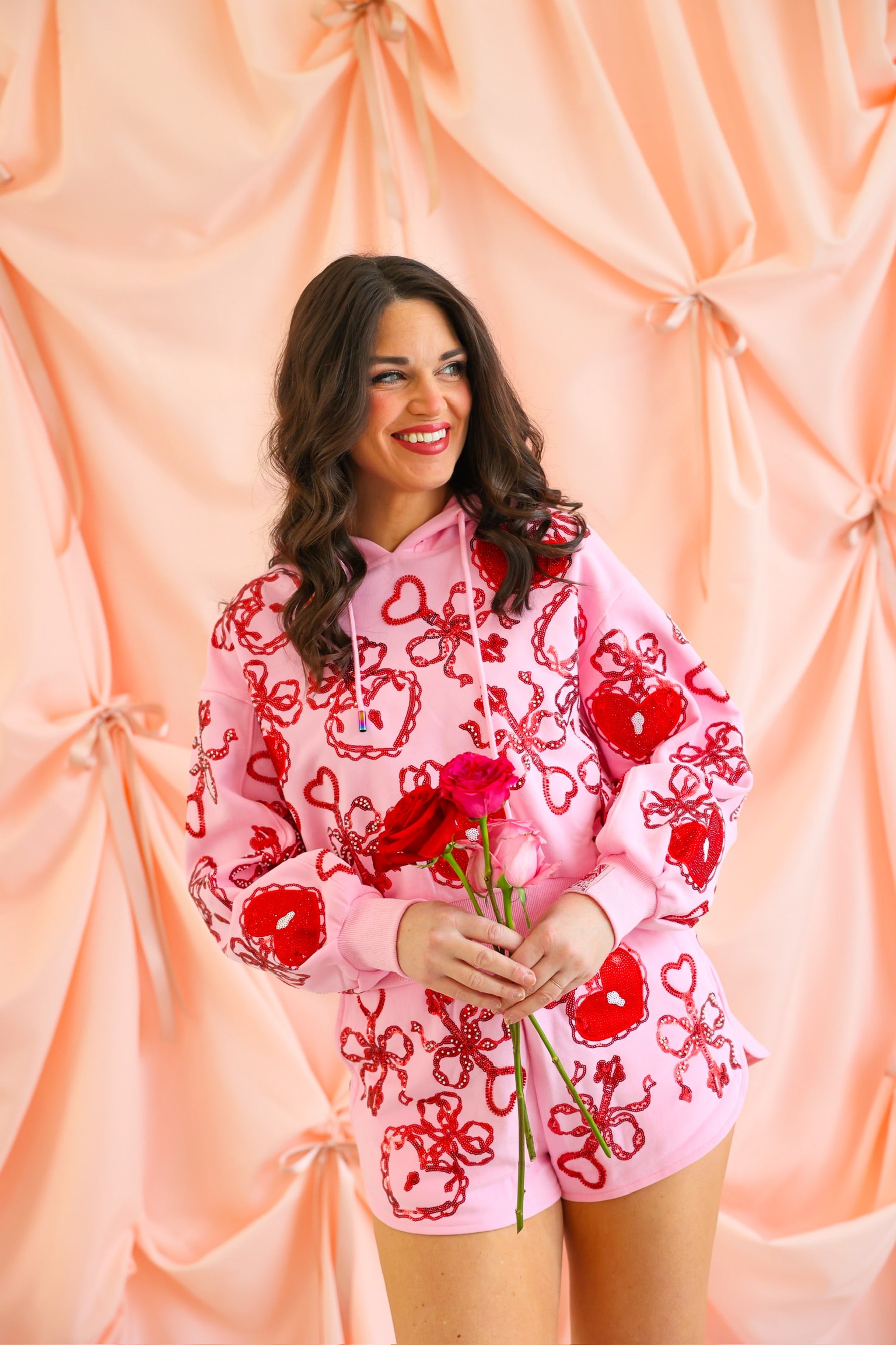Queen of Sparkles Pink & Red Heart Lock & Key Tie Hoodie Sweatshirt