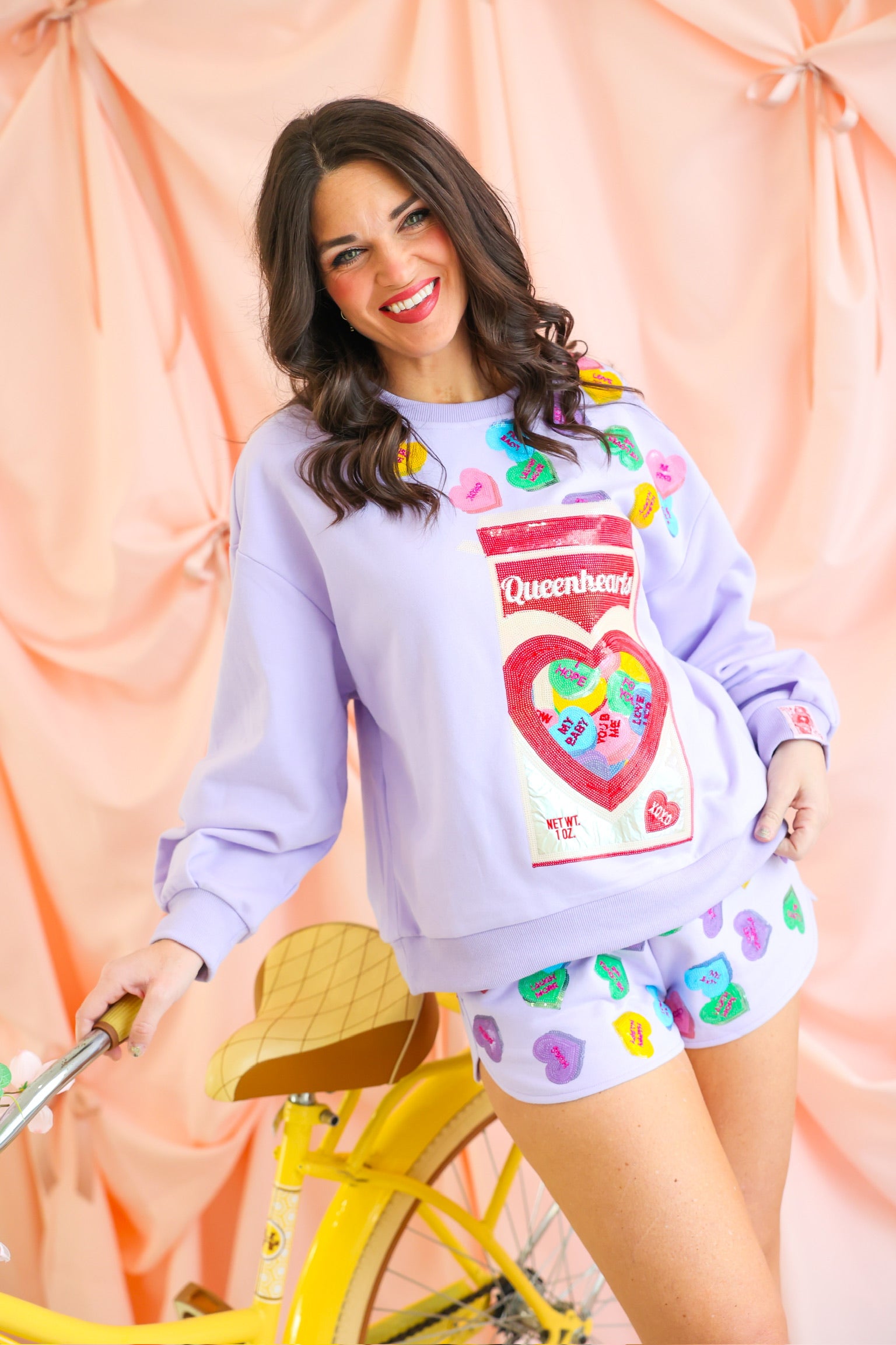 Queen of Sparkles Lavender “Queenhearts” Candy Box Sweatshirt