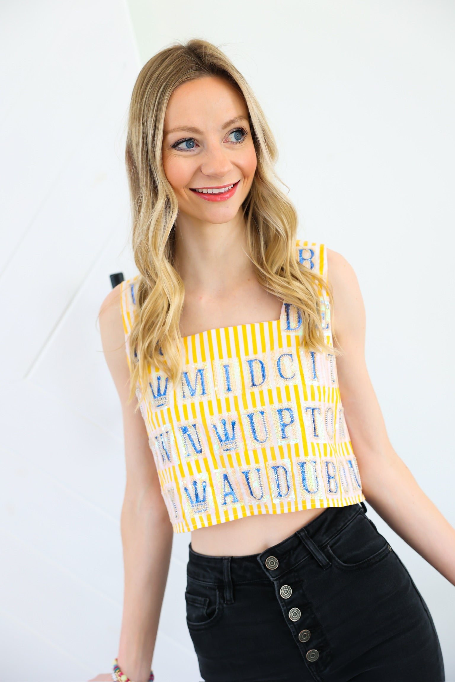 Yellow & White Striped New Orleans Tiles Cotton Top Queen of Sparkles