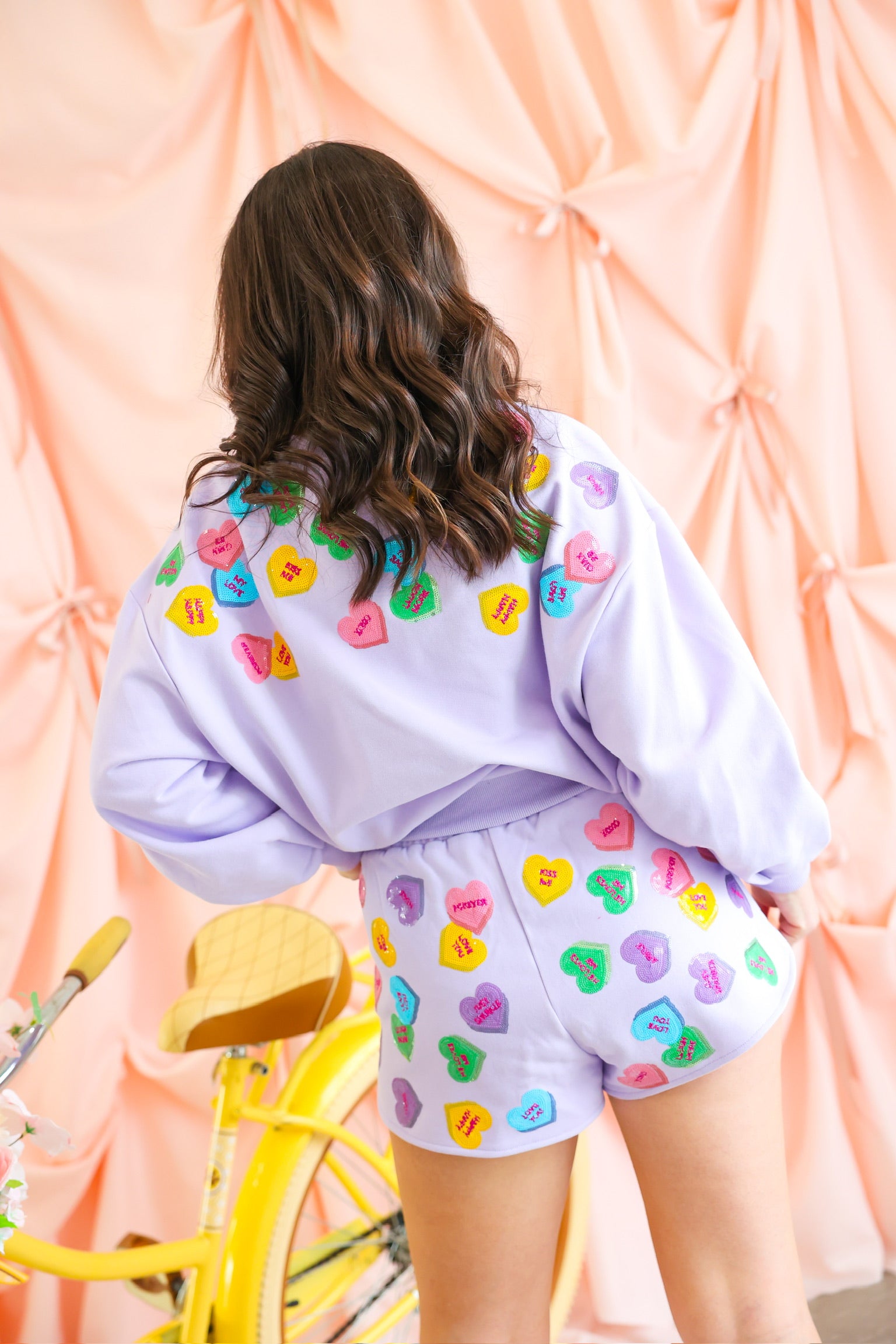 Queen of Sparkles Lavender “Queenhearts” Candy Box Shorts