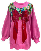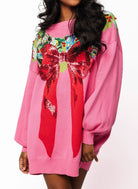 Bright Pink Multi Wreath Around Neck Sweater Dress Queen of Sparkles