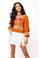 Bring festive cheer to your wardrobe with the Brown Gingerbread Man Jewel Bow Tie Sweater, perfect for the Queen of Sparkles. This cozy sweater features a charming gingerbread man embellished with sparkling jewels and a playful bow tie, blending holiday whimsy with stylish comfort. Ideal for warming up during festive events, it lets you shine with joyful holiday spirit wherever you go.
