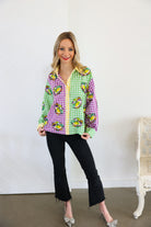 Celebrate the spirit of Mardi Gras in style with this vibrant Colorblock Gingham Button Up Top from Queen of Sparkles. Featuring bold, festive colorblocking paired with classic gingham detailing, this piece captures the playful energy of King Cake season. The structured button-up silhouette offers versatility—dress it up for parade season or down for everyday wear. Perfect for anyone who loves making a statement with their fashion choices, this top brings joy and personality to your wardrobe. Embrace the magic of New Orleans-inspired style with a piece that's as fun and fabulous as you are.