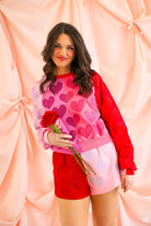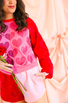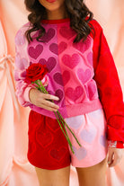 Queen of Sparkles Colorblock Rhinestone Hearts Sweatshirt