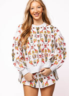 Step into holiday magic with the Grey Nutcracker & Candy Cane Sweatshirt, designed for the Queen of Sparkles. This cozy sweatshirt features charming festive motifs that bring nostalgic cheer while keeping you warm and comfortable. Its stylish grey base lets the nutcracker and candy cane details pop, making it a perfect choice for holiday gatherings or casual winter days. Celebrate the season with a touch of sparkle and timeless holiday spirit in one irresistible look.