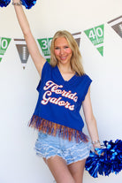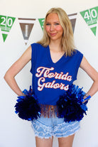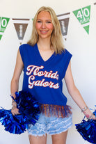 Stay stylish and comfortable with the Licensed Florida Feather Bottom Tank Sweater. This unique piece combines the casual ease of a tank top with the cozy warmth of a sweater, featuring a distinctive feathered bottom design that adds flair to any outfit. Perfect for layering or wearing on its own, it’s a versatile addition to your wardrobe that effortlessly blends fashion and function.