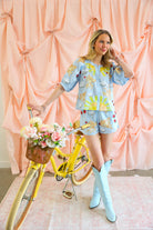 Queen of Sparkles Light Blue Cupid in the Sky Cotton Button Up Top