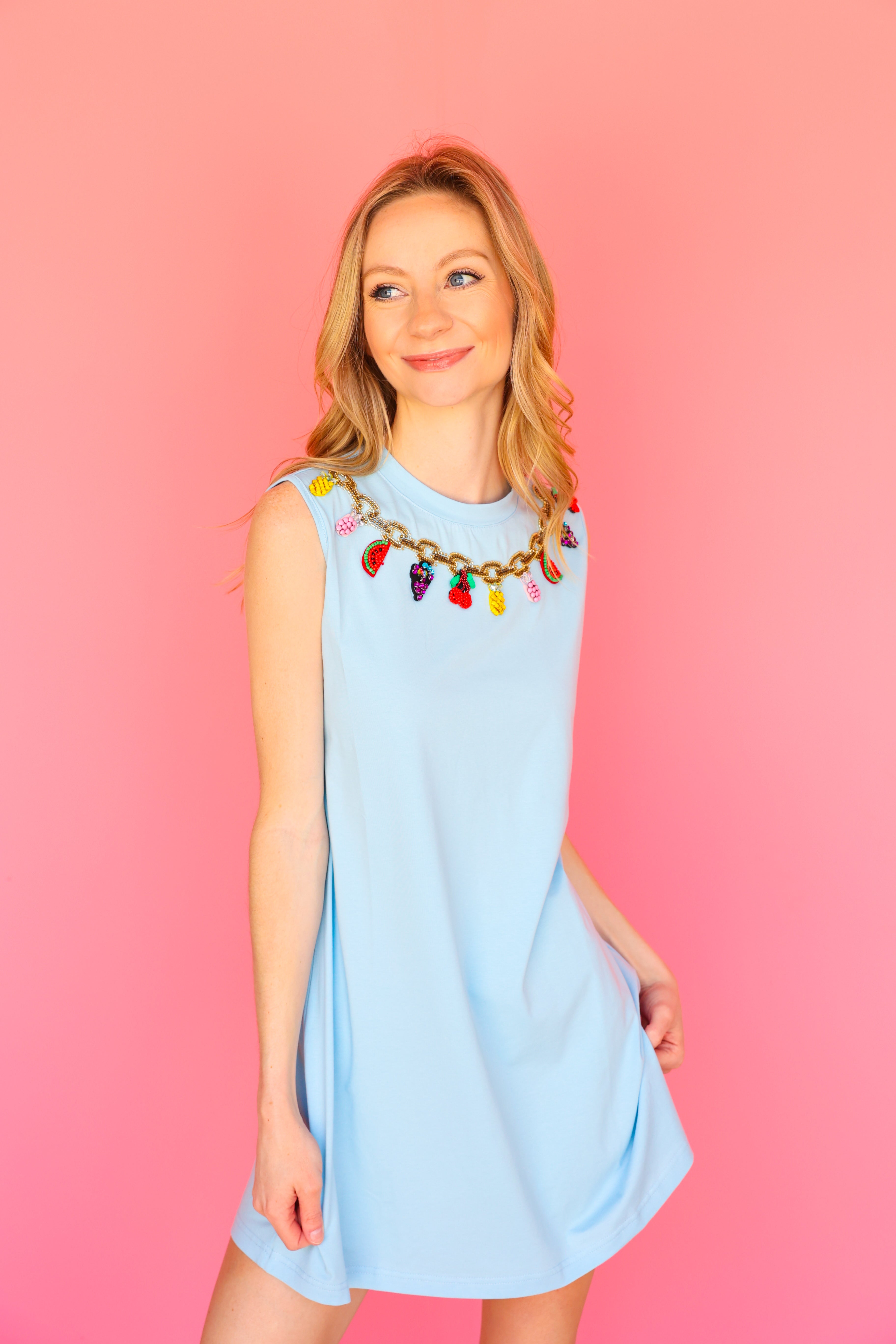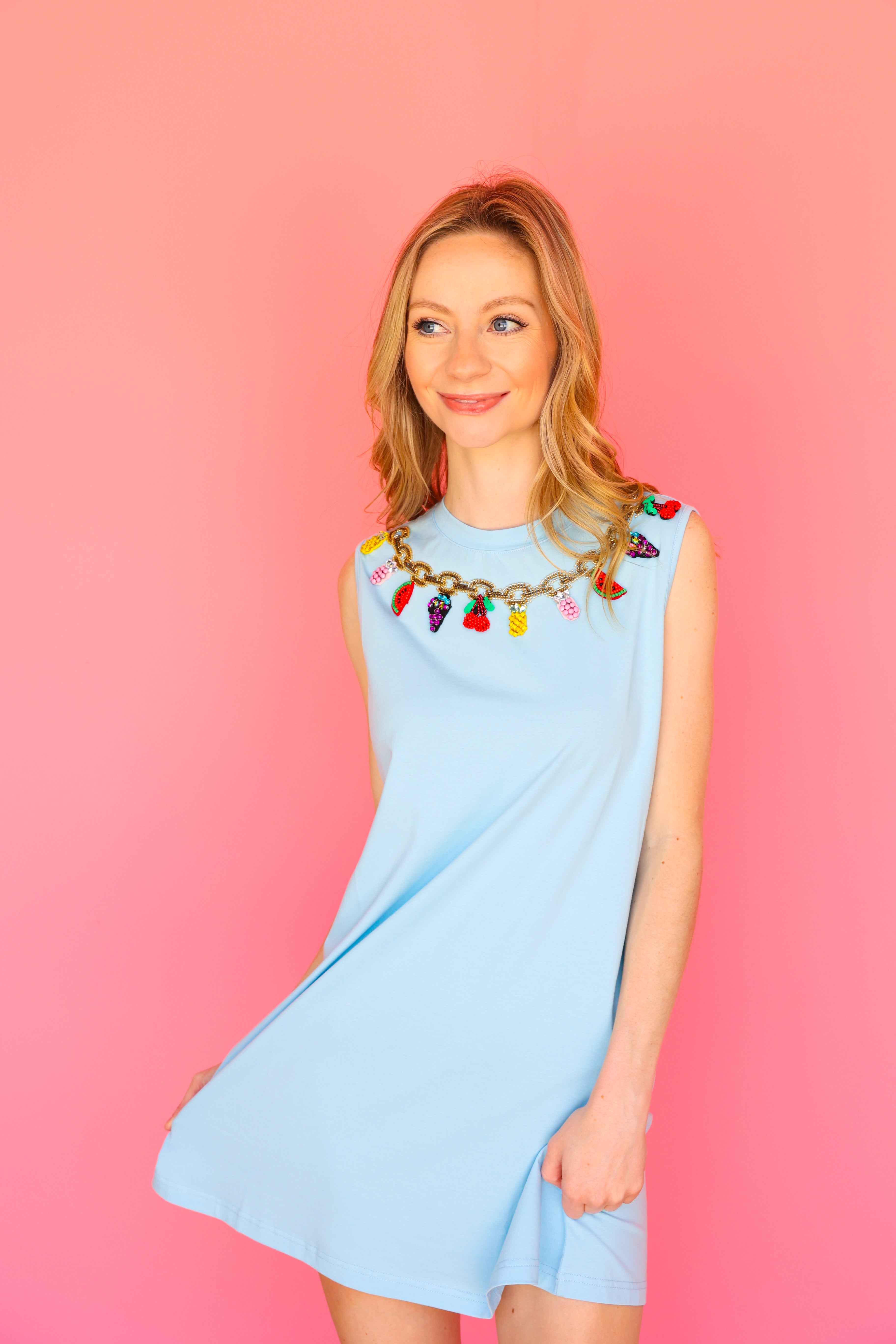 Queen of Sparkles Light Blue Fruit Charm Necklace Tank Dress