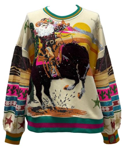 Multi Vintage Cowboy Santa Sweatshirt Queen of Sparkles