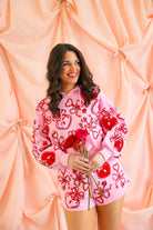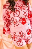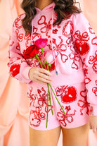 Sweet, sparkly, and made to steal hearts 💕 The Queen of Sparkles Pink & Red Heart Lock & Key Shorts bring playful romance to a comfy, statement-making silhouette. Designed with a soft pink base and covered in shimmering red heart, lock, and key embellishments, these shorts deliver all the sparkle with an easy, wear-anywhere fit. Whether you’re lounging, brunching, or styling a coordinated Valentine look, these shorts are pure Queen of Sparkles magic.