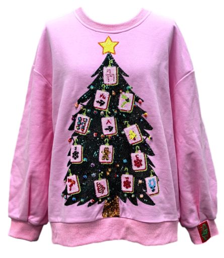 Pink Mahjong Christmas Tree Sweatshirt Queen of Sparkles