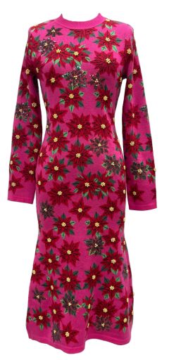 Pink & Red Poinsettia Knit Midi Dress Queen of Sparkles