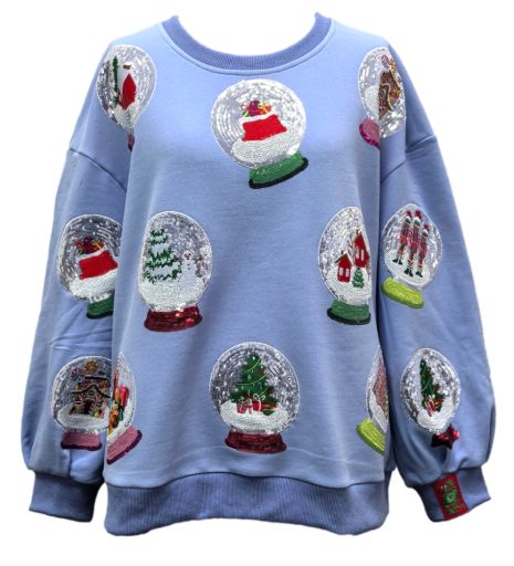 Powder Blue Christmas Snow Globe Sweatshirt Queen of Sparkles